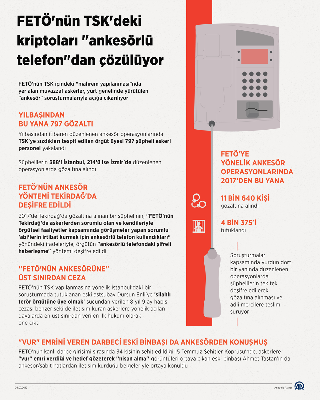 Fetullahçı Terör Örgütü'nün (FETÖ) TSK içindeki "mahrem yapılanması"nda yer alan kripto askerler, güvenlik güçleri ve savcıların yurt genelinde yürüttüğü "ankesör" soruşturmalarıyla açığa çıkarılıyor.