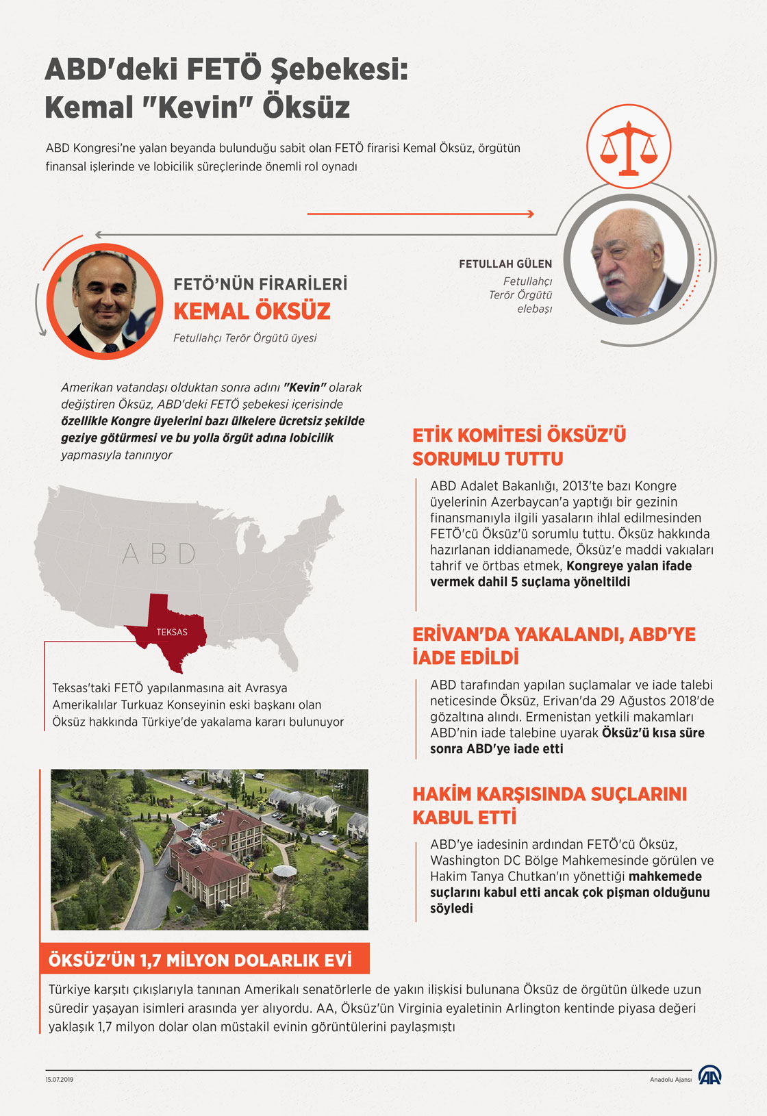 ABD Kongre üyelerini götürdüğü gezilerle ilgili Kongreye yalan beyanda bulunarak suç işleyen Fetullahçı Terör Örgütü (FETÖ) firarisi Kemal Öksüz, örgütün ABD'deki finansal işlerinde ve lobicilik süreçlerinde önemli roller oynuyor.
