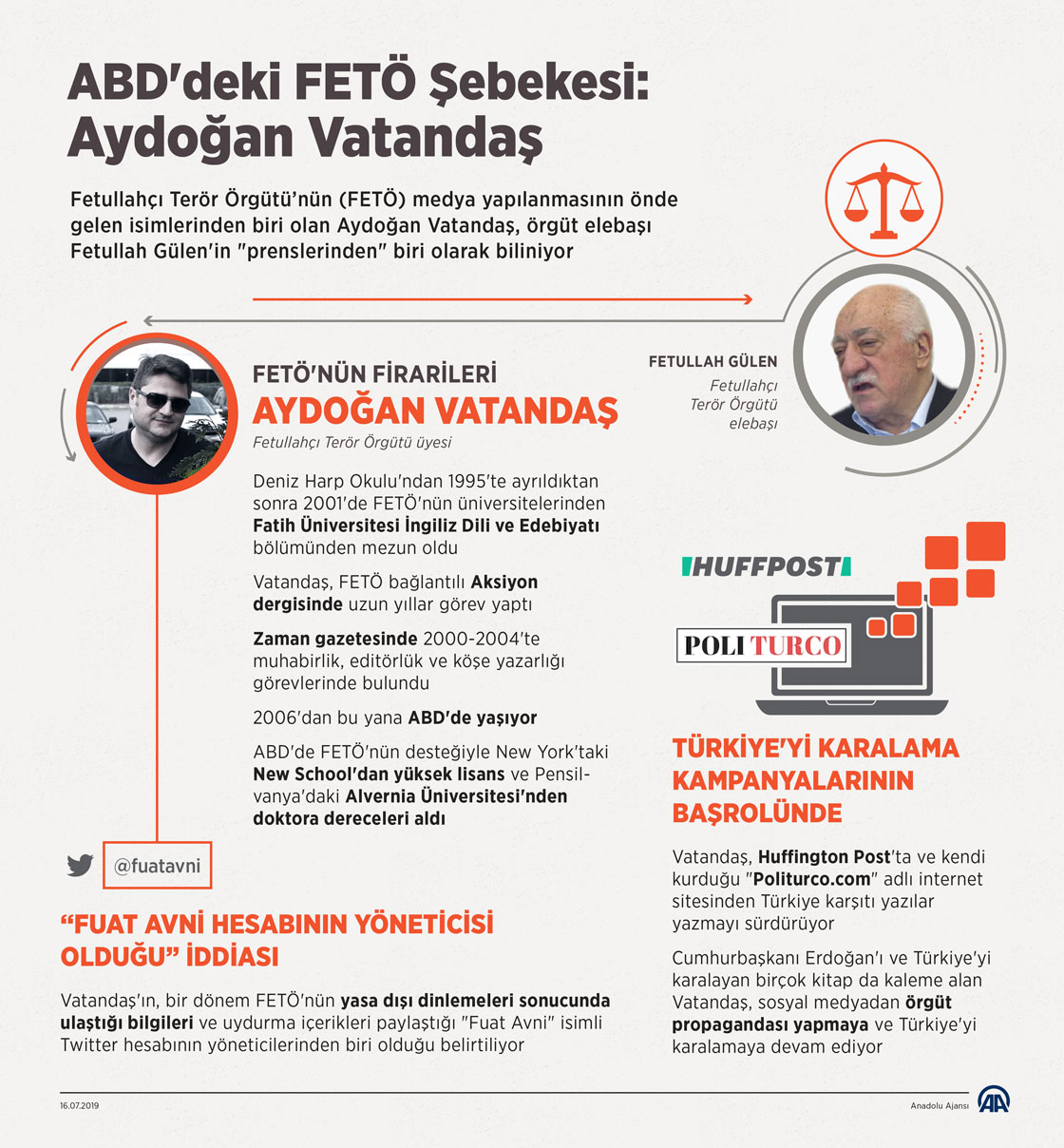 Fetullahçı Terör Örgütü’nün (FETÖ) medya yapılanmasının önde gelen isimlerinden biri olan Aydoğan Vatandaş, örgüt elebaşı Fetullah Gülen'in "prenslerinden" biri olarak biliniyor. ( Murat Usubaliev - Anadolu Ajansı )