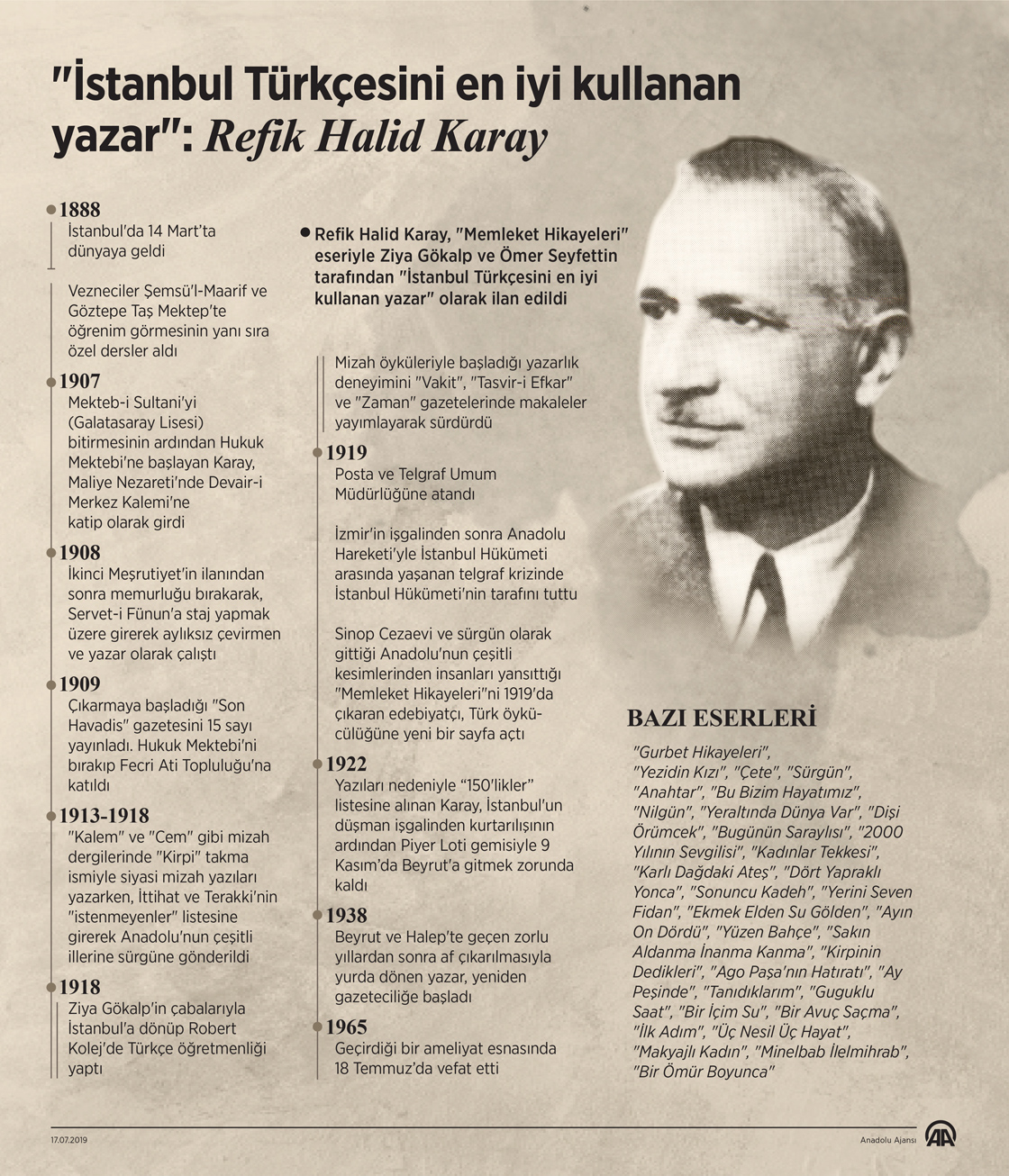 Türk edebiyatının önde gelen isimlerinden romancı, öykü yazarı ve gazeteci Refik Halid Karay, vefatının 54. yılında anılıyor. ( Ahmet Burak Özkan - Anadolu Ajansı )