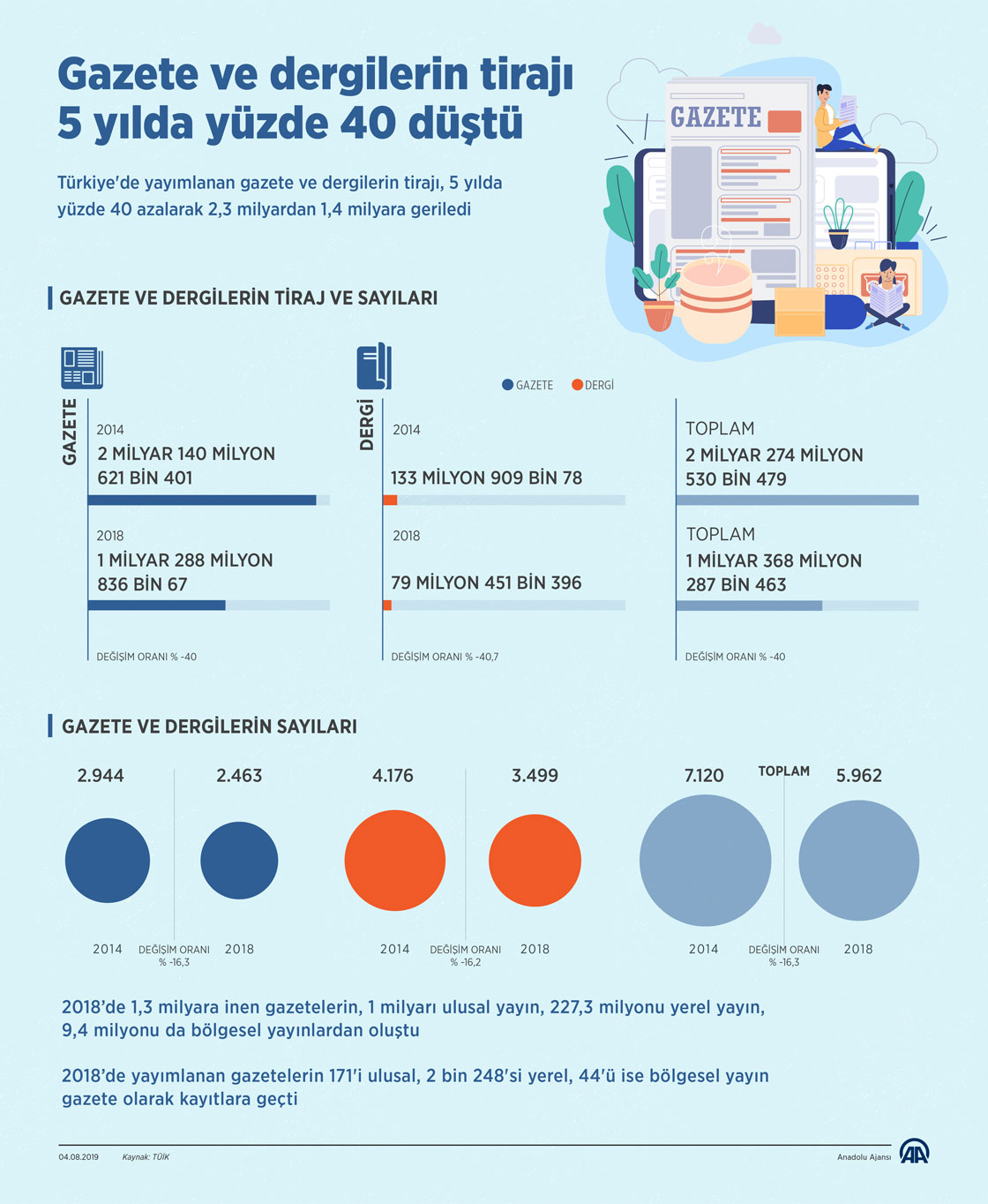 Gazete ve dergilerin tirajı 5 yılda yüzde 40 düştü