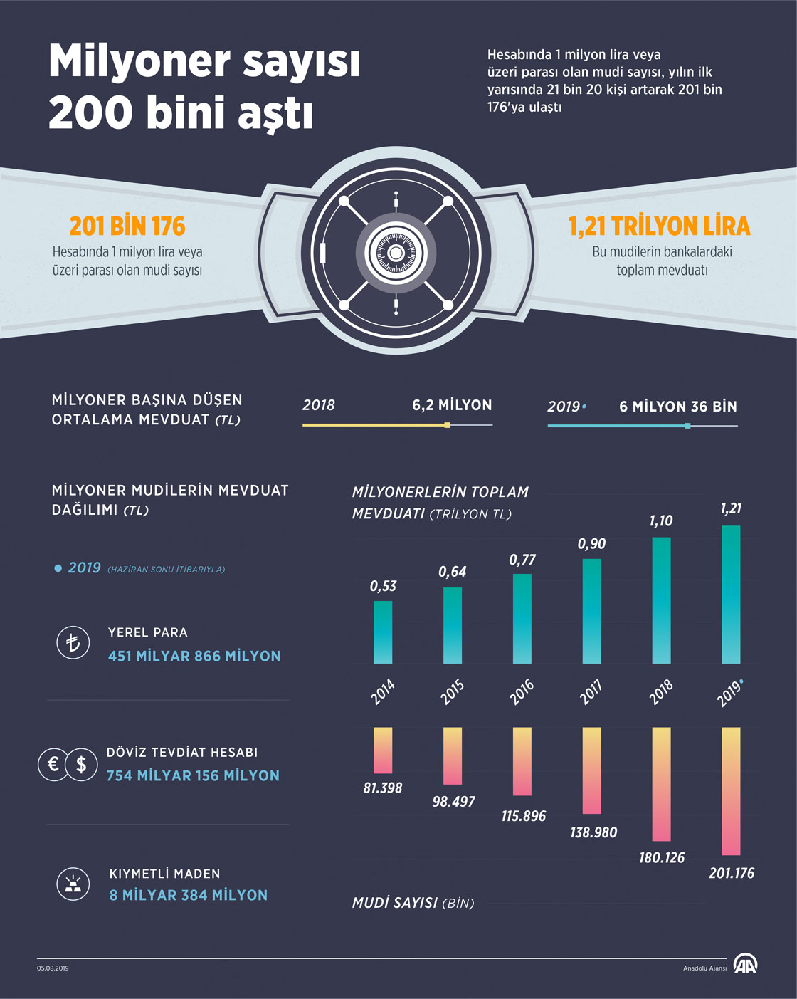 Hesabında 1 milyon lira veya üzeri parası olan mudi sayısı, yılın ilk yarısında 21 bin 50 kişi artarak 200 bini aştı. ( Yasin Demirci - Anadolu Ajansı )