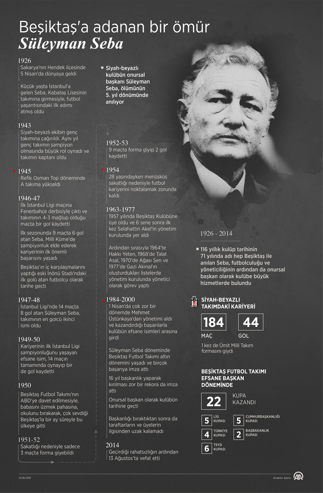 Siyah-beyazlı kulübün onursal başkanı Süleyman Seba, ölümünün 5. yıl dönümünde anılacak. Futbolcu olarak siyah-beyazlı renklere bağlanan Seba, yöneticiliğinin ardından başkan olarak kulübe büyük hizmetlerde bulundu. Kulübe kazandırdığı şampiyonluklarla efsane olan Seba, 1984-2000 arasında 16 yıl başkanlık koltuğunda oturdu.12 Ağustos 2019•Güncelleme: 12 Ağustos 2019