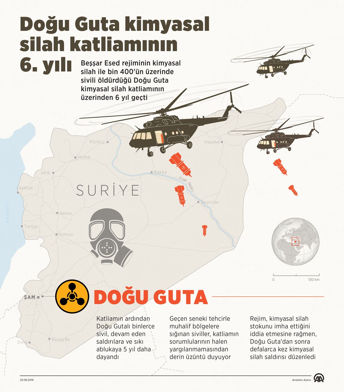 Beşşar Esed rejiminin kimyasal silah ile bin 400'ün üzerinde sivili öldürdüğü Doğu Guta kimyasal silah katliamının üzerinden 6 yıl geçti. ( Murat Usubaliev - Anadolu Ajansı )