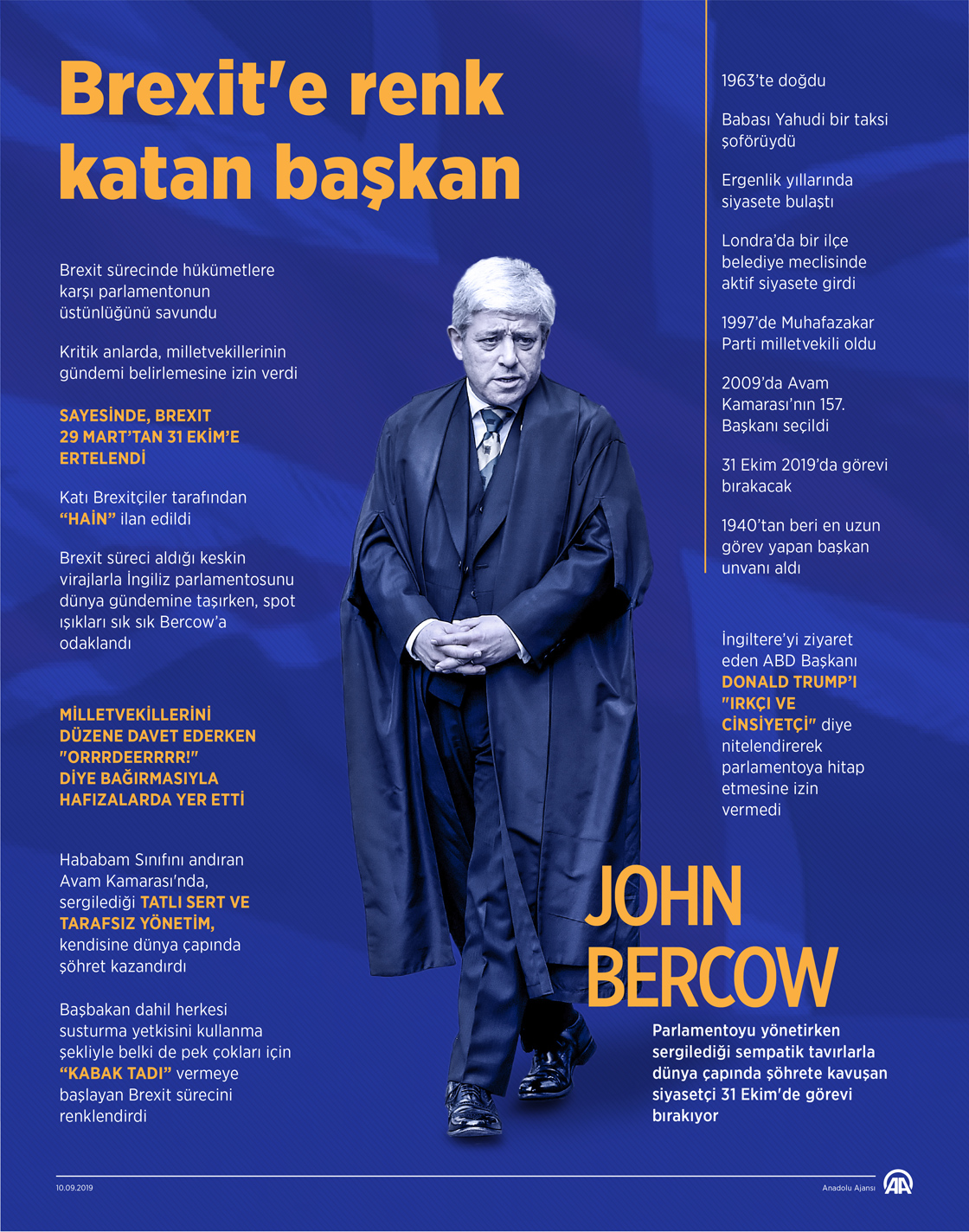 İngiltere’de 2 başbakanı ve onlarca bakanı istifaya sürükleyen, sadece siyasi partileri değil, aileleri de bölen Brexit sürecinin yıldızlaştırdığı tek isim, görevini bırakmaya hazırlanan Avam Kamarası Başkanı John Bercow oldu. ( Yasin Demirci - Anadolu Ajansı )