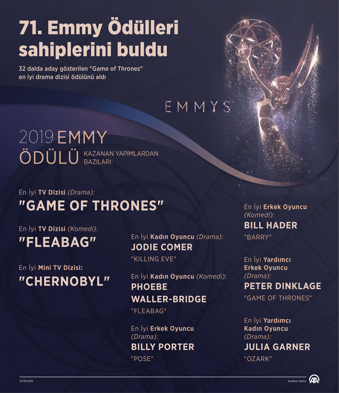 ABD'de "Televizyonun Oscarları" olarak nitelendirilen Emmy Ödülleri'nin kazananları belli oldu. ( Yasin Demirci - Anadolu Ajansı )