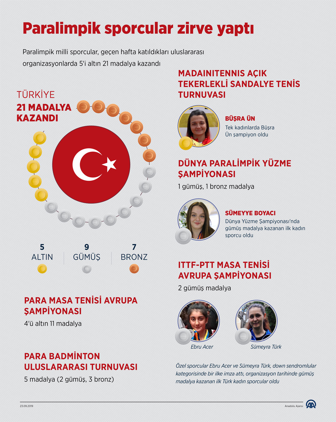 Paralimpik milli sporcular, geçen hafta katıldıkları uluslararası organizasyonlarda 5'i altın 21 madalya kazandı. ( Kemal Delikmen - Anadolu Ajansı )