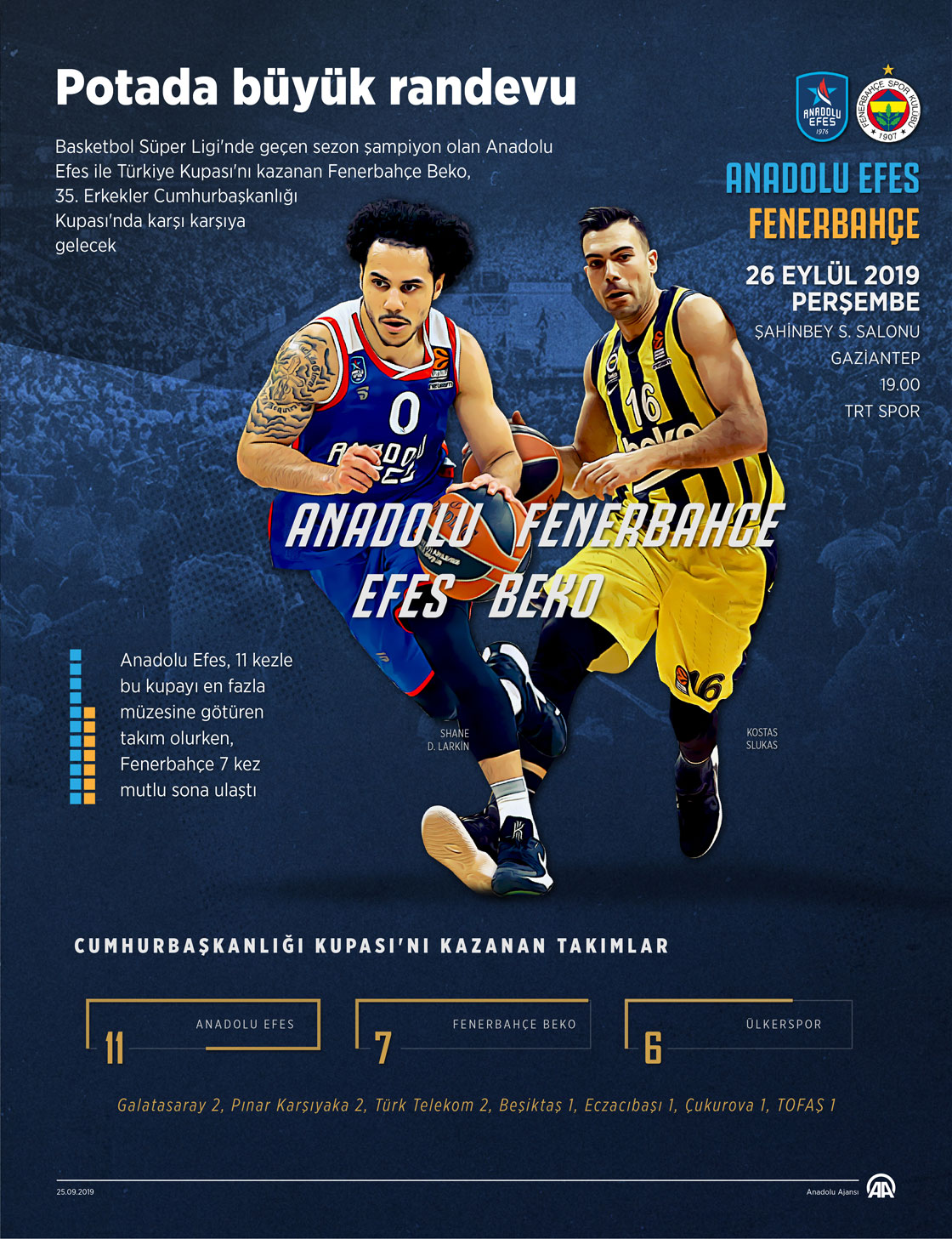 Basketbol Süper Ligi'nde geçen sezon şampiyon olan Anadolu Efes ile Türkiye Kupası'nı kazanan Fenerbahçe Beko, 35. Erkekler Cumhurbaşkanlığı Kupası'nda yarın karşı karşıya gelecek. ( Kemal Delikmen - Anadolu Ajansı )