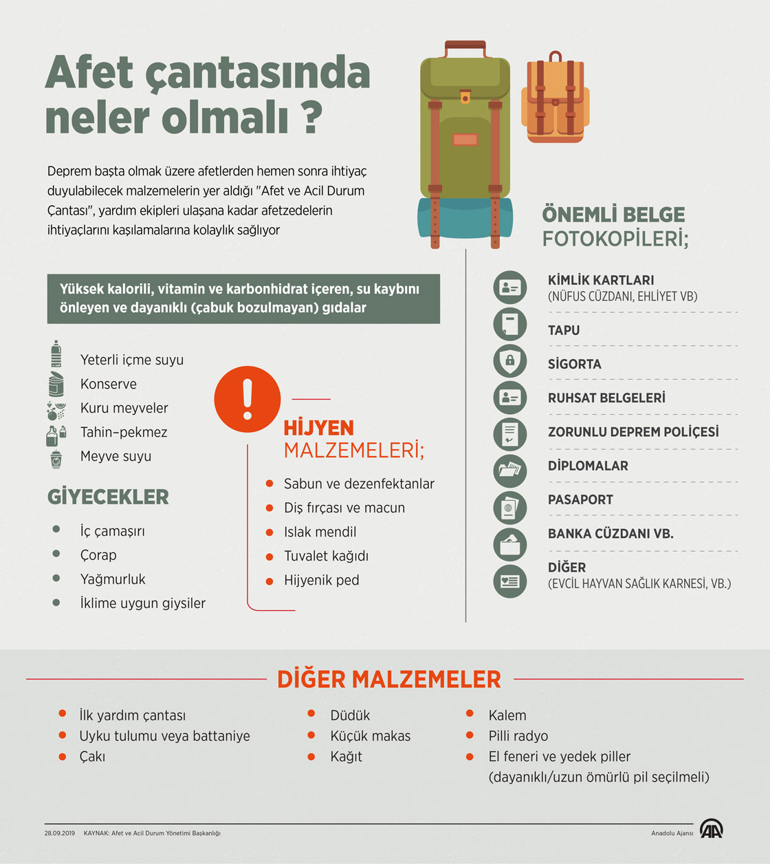 Afet çantasında neler olmalı