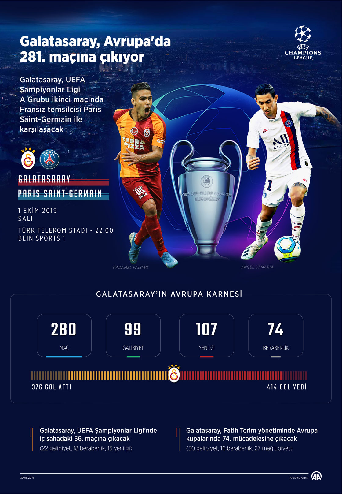 Galatasaray, Avrupa'da 281. maçına çıkıyor