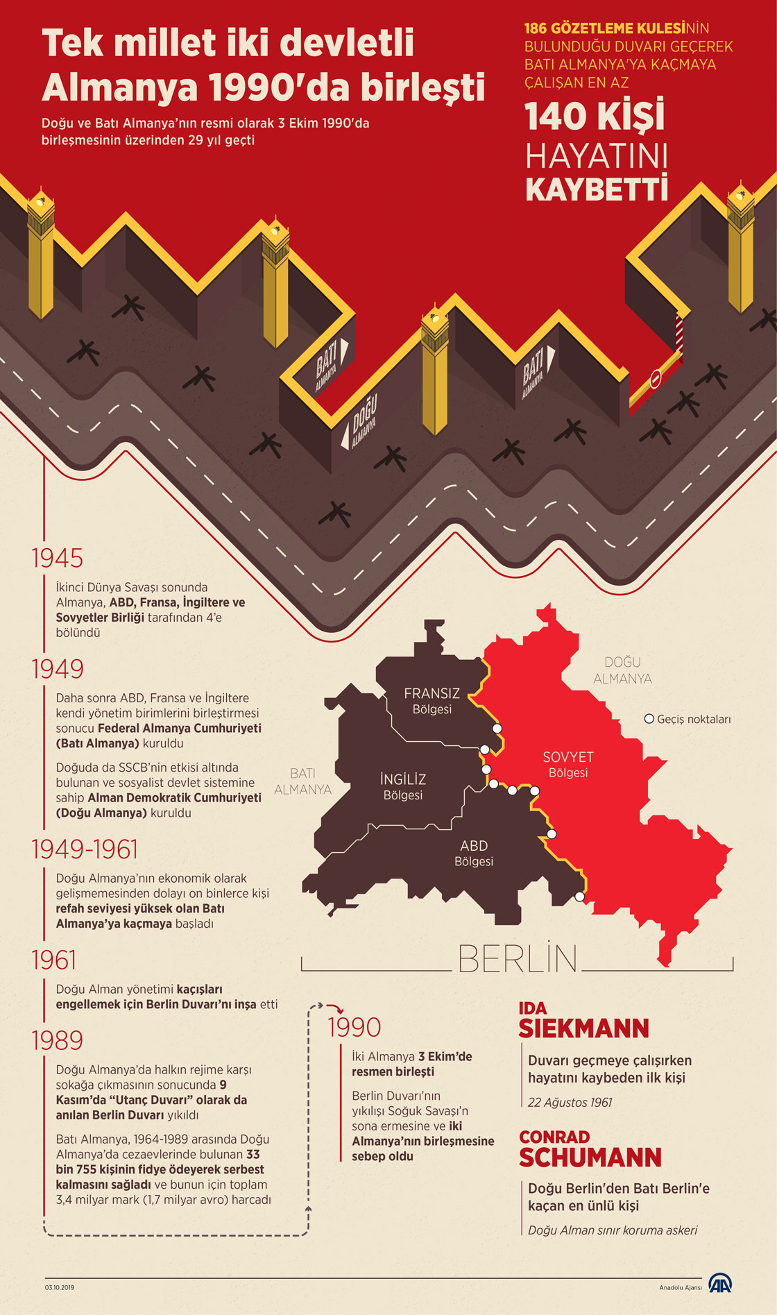 Doğu ve Batı Almanya’nın resmi olarak 3 Ekim 1990'da birleşmesinin üzerinden 29 yıl geçti. ( Yasin Demirci - Anadolu Ajansı )
