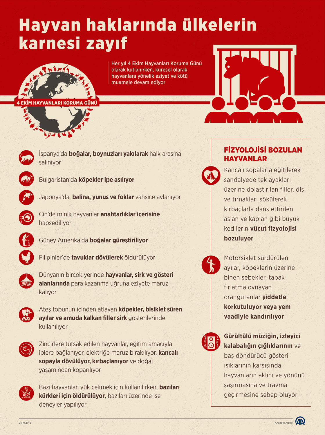 Her yıl 4 Ekim Hayvanları Koruma Günü olarak kutlanırken, küresel olarak hayvanlara yönelik eziyet ve kötü muamele devam ediyor.