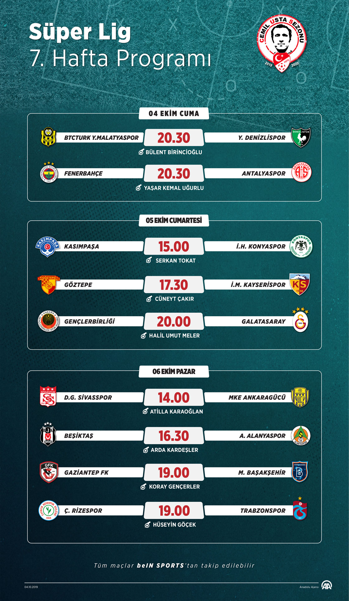 Süper Lig'in 7. haftasında 4 Ekim Cuma günü 2 maç, 5 Ekim Cumartesi 3, 6 Ekim Pazar günü ise 4 maç ile tamamlanacak. (Anadolu Ajansı - Kemal Delikmen)