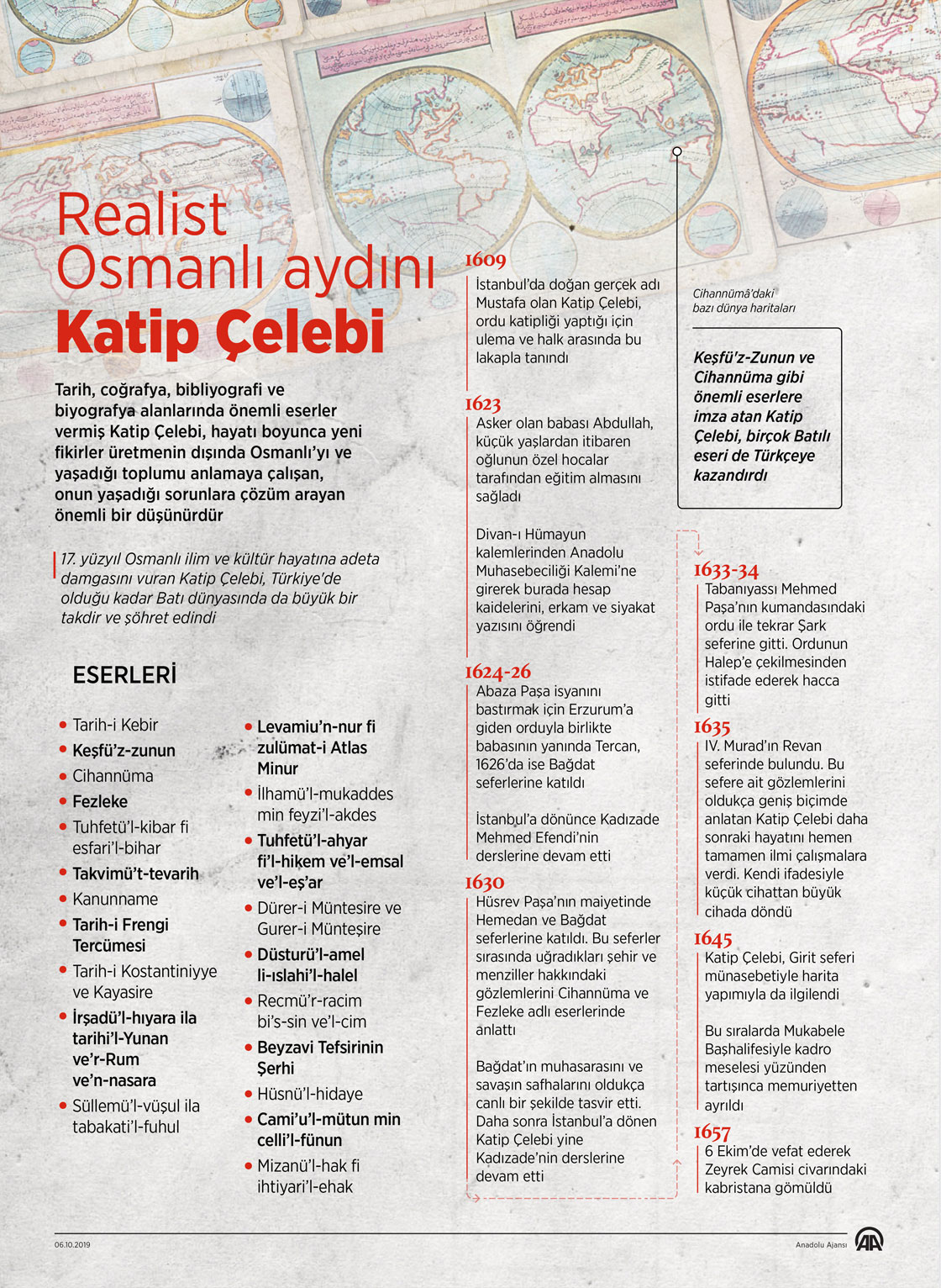 Hayatı boyunca yeni fikirler üretmenin yanında, yaşadığı toplumu anlamaya çalışan, tarih, coğrafya ve bibliyografya alanlarında önemli eserler veren Osmanlı alimi Katip Çelebi, 362 yıl önce bugün vefat etti. ( Ahmet Burak Özkan - Anadolu Ajansı )