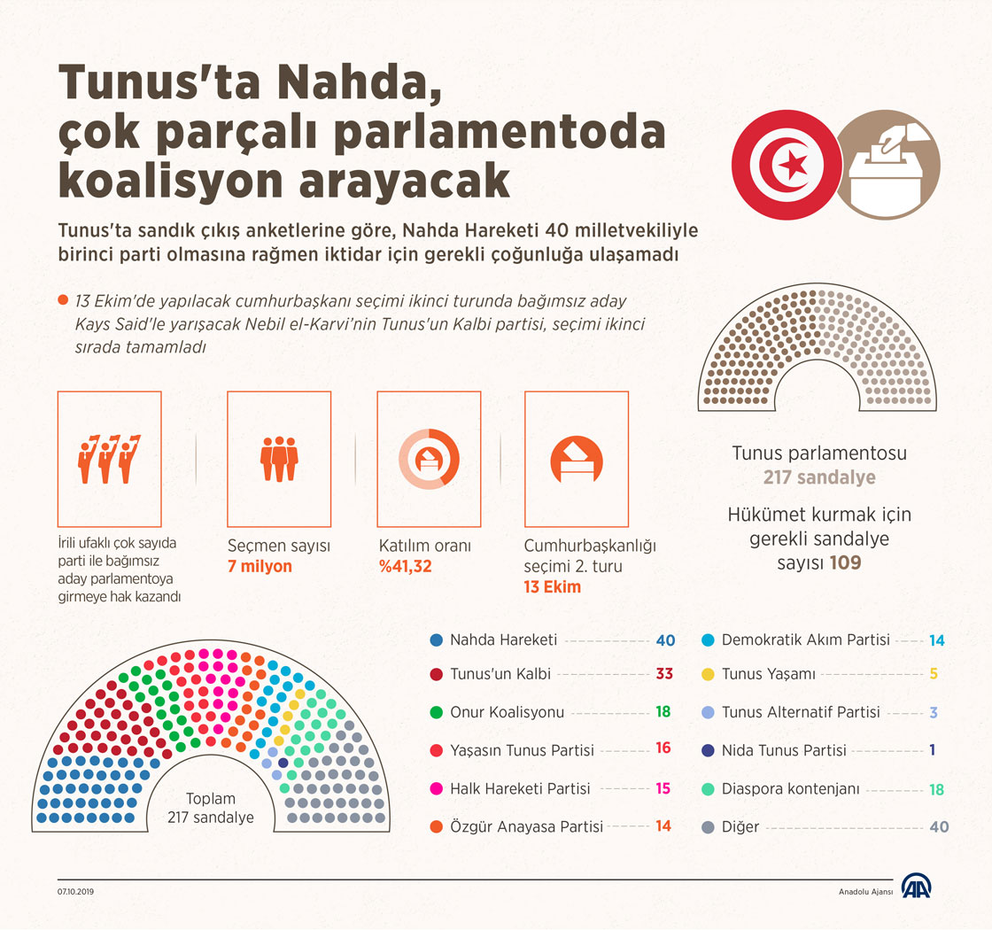 Tunus'ta Nahda, çok parçalı parlamentoda koalisyon arayacak