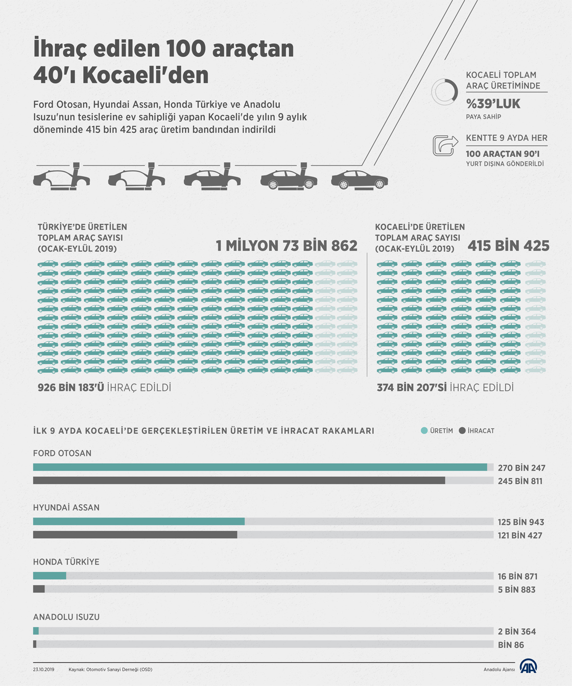 Türk otomotiv sanayisinin ocak-eylül dönemindeki dış satışlarının yüzde 40'ını Kocaeli'deki fabrikalarda üretilen araçlar oluşturdu. ( Mahmut Resul Karaca - Anadolu Ajansı )