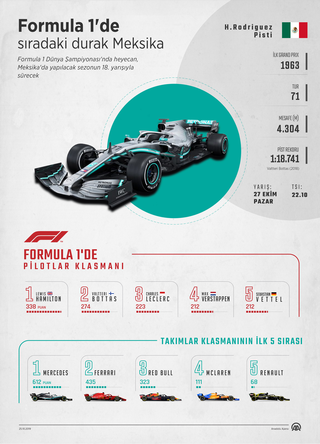 Formula 1 Dünya Şampiyonası'nda heyecan, Meksika'da yapılacak sezonun 18. yarışıyla sürecek.