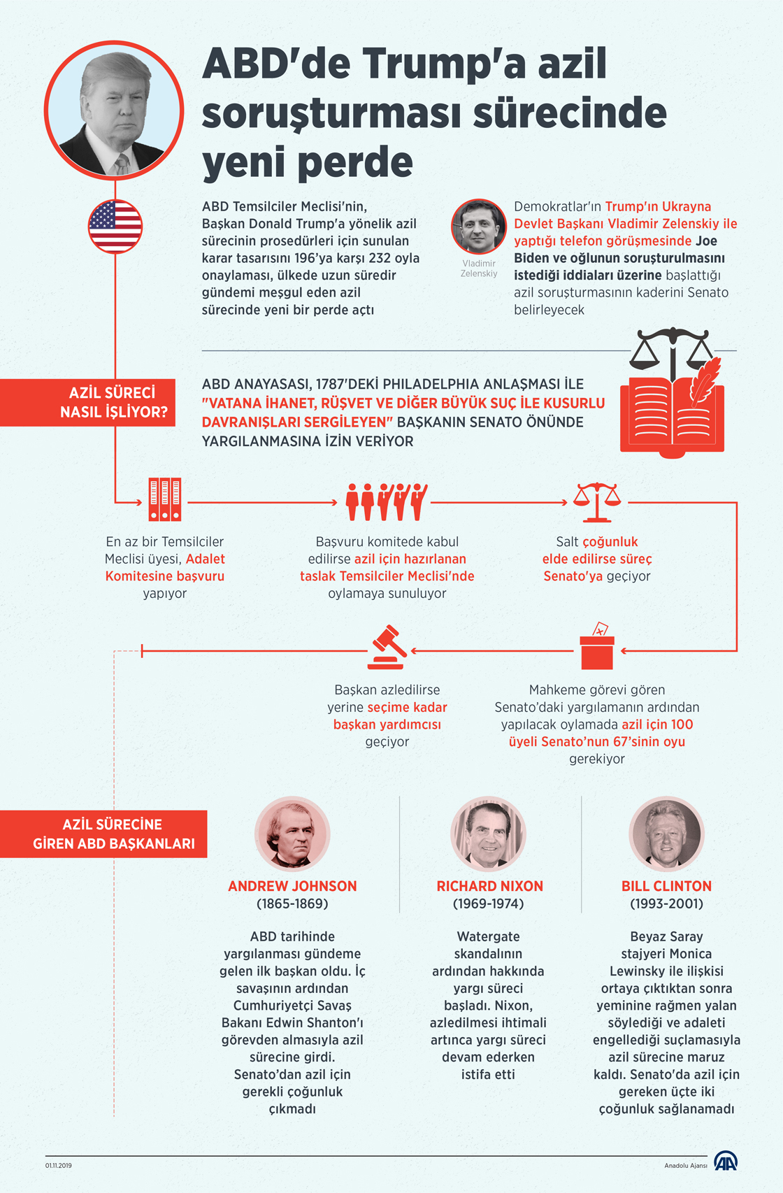 ABD Temsilciler Meclisi'nin, Başkan Donald Trump'a yönelik azil sürecinin prosedürleri için sunulan karar tasarısını onaylaması ile ülkede uzun süredir gündemi meşgul eden azil sürecinde yeni bir aşamaya geçildi.