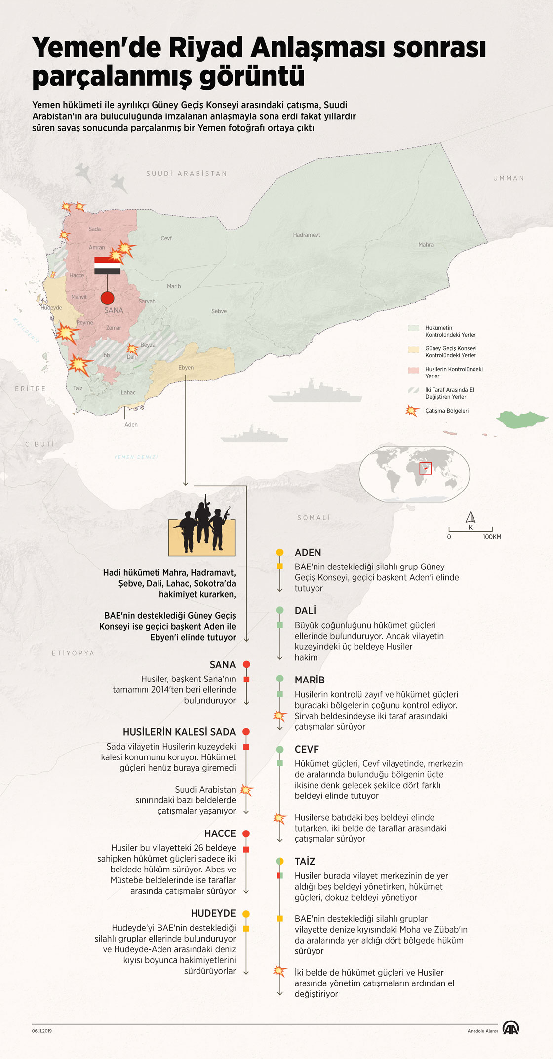Yemen hükümeti ile ayrılıkçı Güney Geçiş Konseyi arasındaki çatışmaları sona erdiren Riyad Anlaşması dün imzalandı ancak ülkedeki parçalanmış yapı ortadan kalkmadı. ( Ahmet Burak Özkan - Anadolu Ajansı )