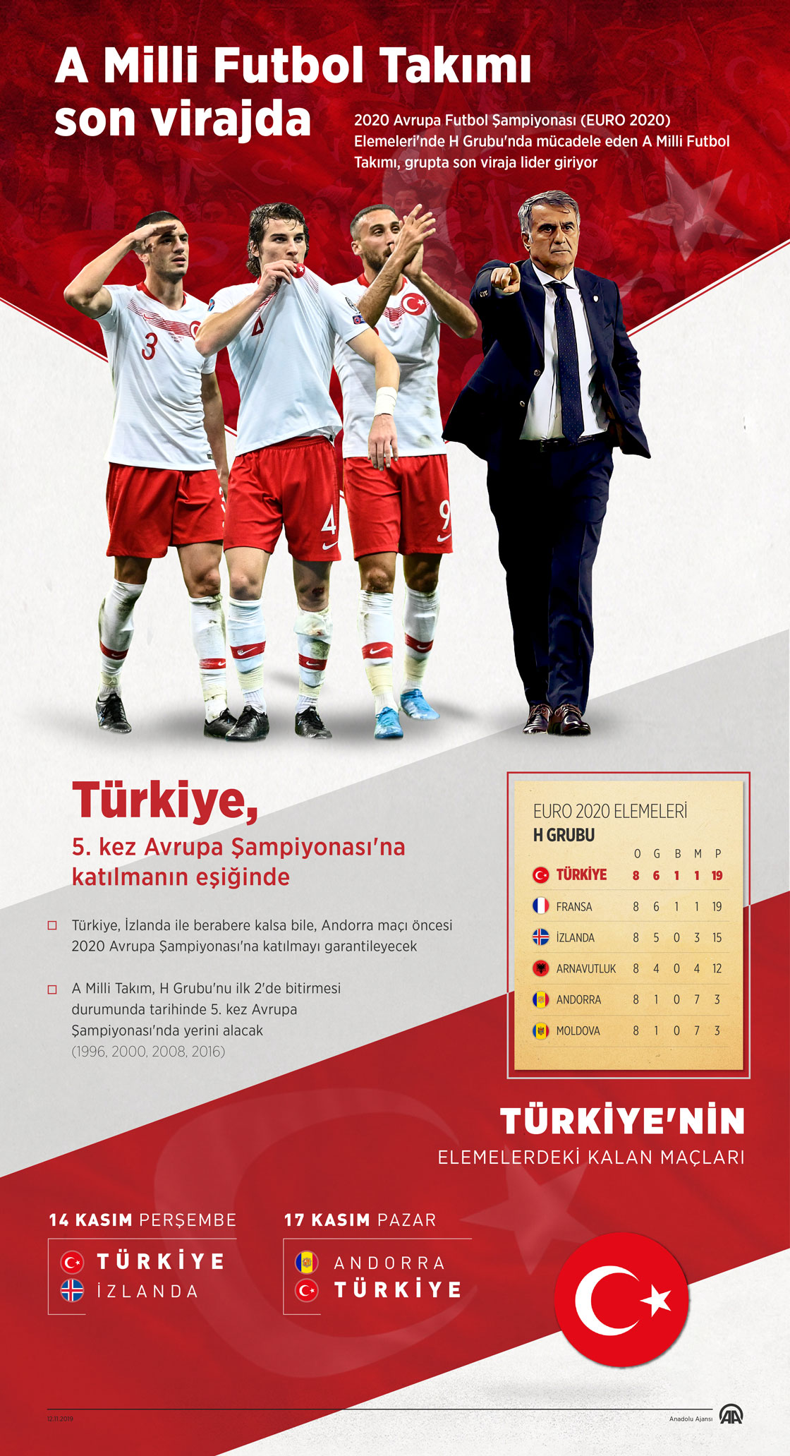 2020 Avrupa Futbol Şampiyonası (EURO 2020) Elemeleri'nde H Grubu'nda mücadele eden A Milli Futbol Takımı, grupta son viraja lider giriyor.