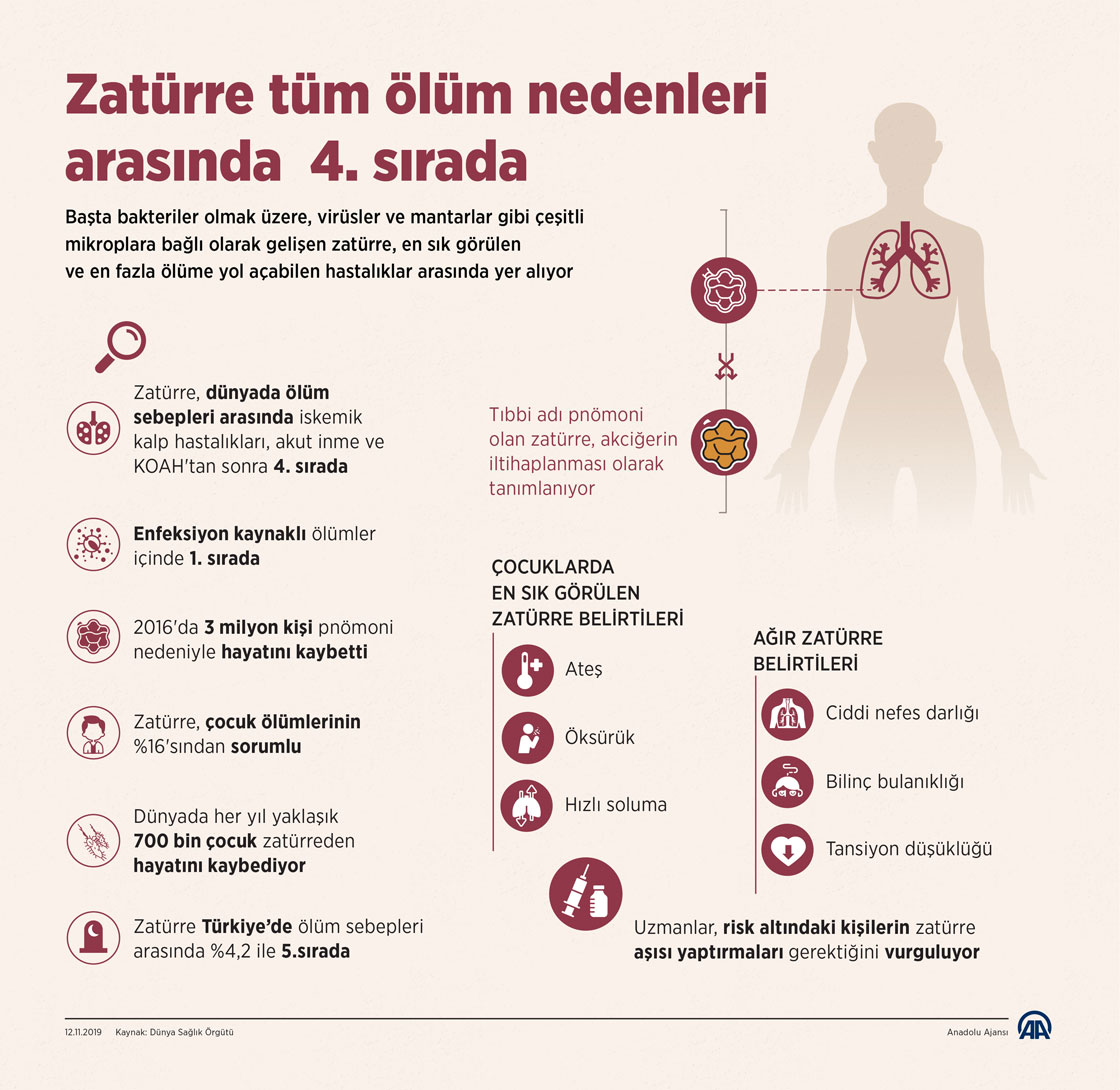 Zatürre tüm ölüm nedenleri arasında 4. sırada