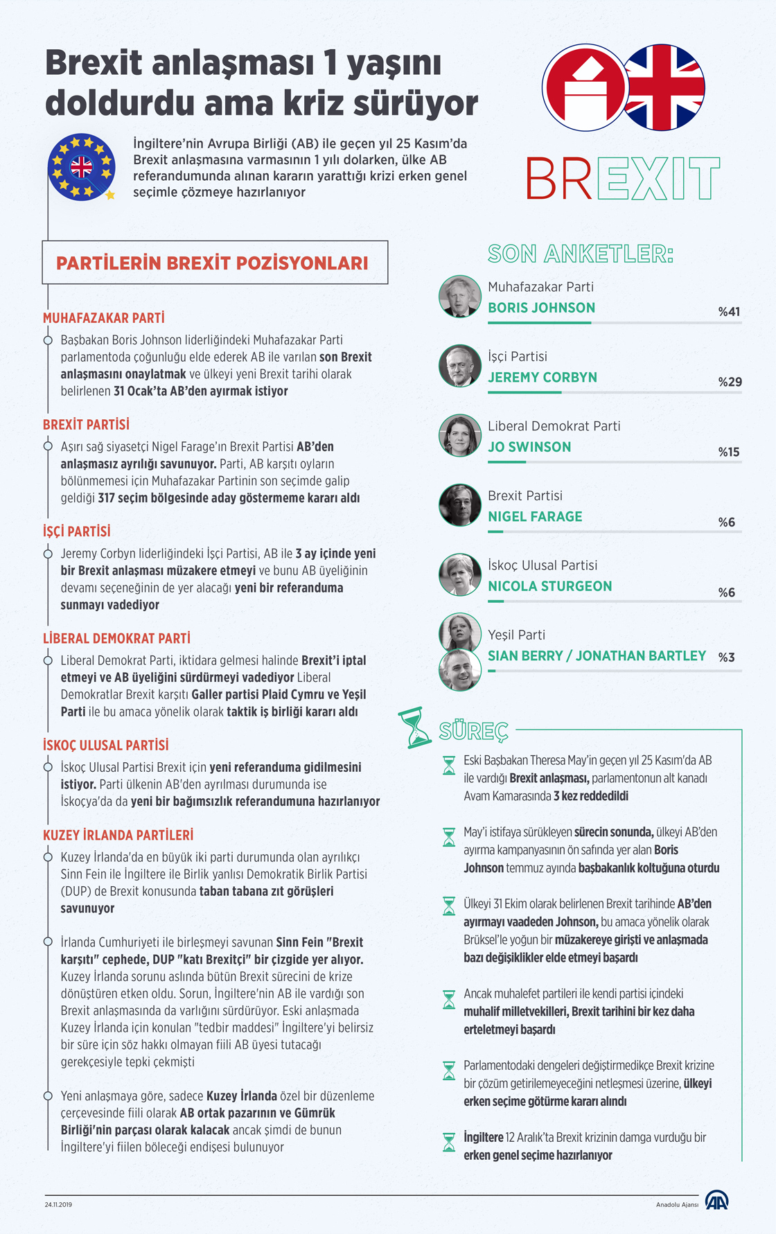 İngiltere’nin Avrupa Birliği (AB) ile Brexit anlaşmasına varmasının 1 yılı dolarken, ülke AB referandumunda alınan kararın yarattığı krizi erken genel seçimle çözmeye hazırlanıyor.