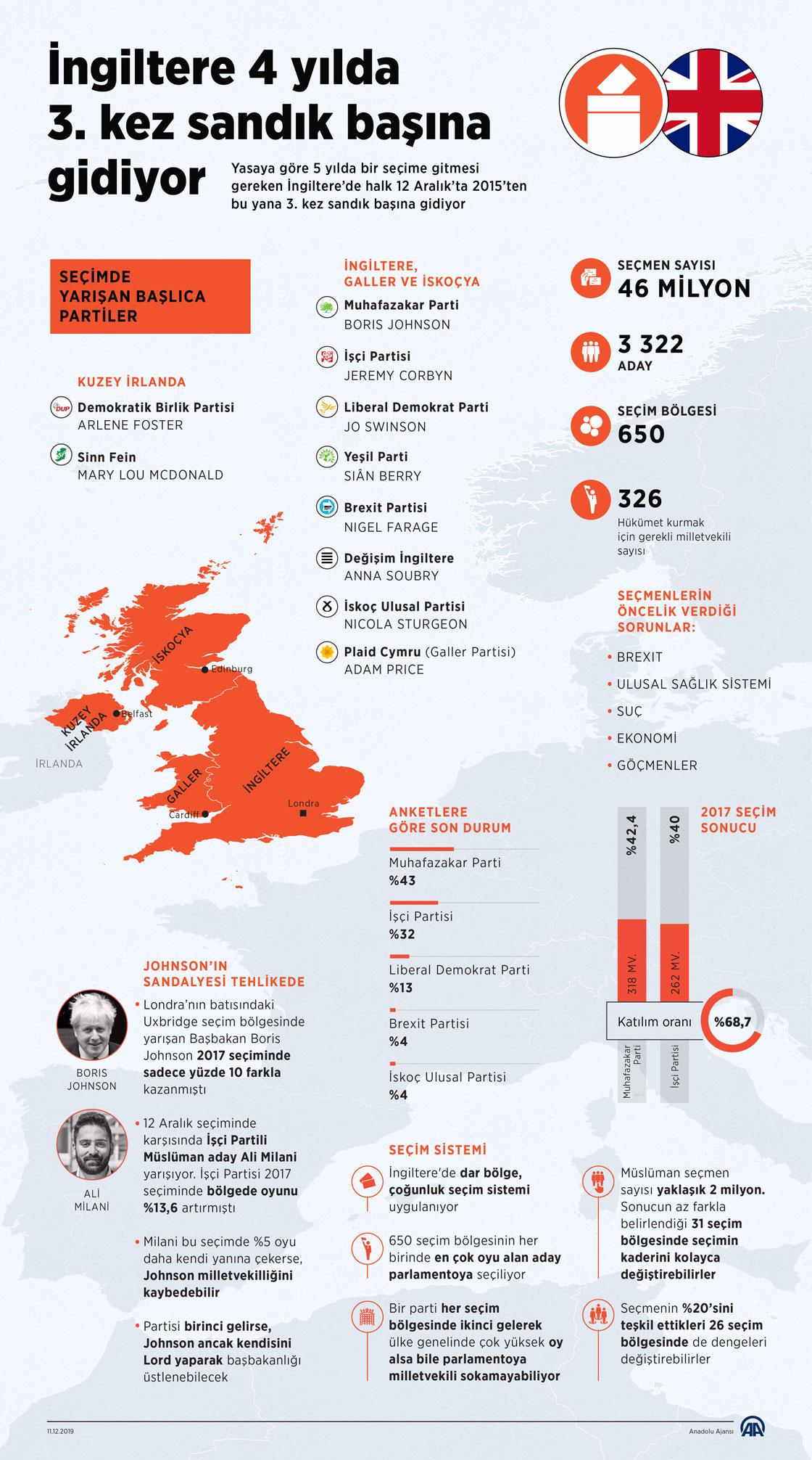İngiltere'de, yasaya göre 5 yılda bir yapılması gereken genel seçim, yarın Brexit krizinin gölgesinde son dört yılda üçüncü kez düzenlenecek. ( Yasin Demirci - Anadolu Ajansı )