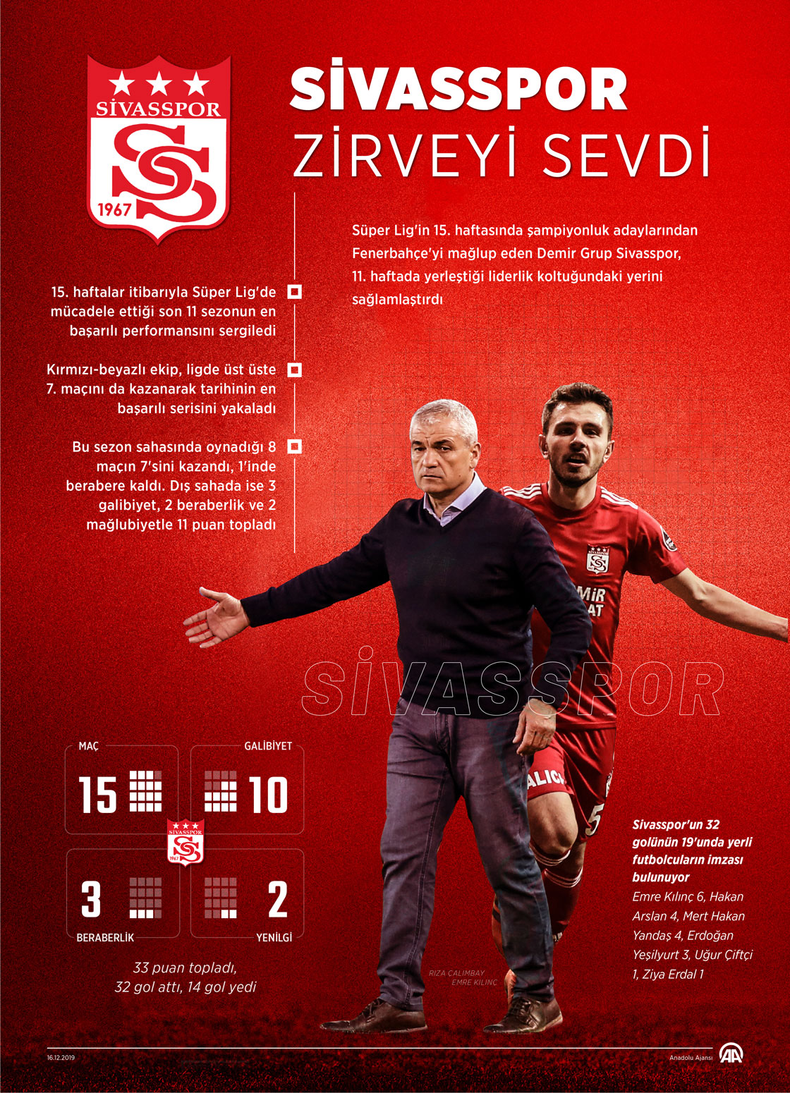 Süper Lig'in 15. haftasında konuk ettiği Fenerbahçe'yi 3-1 yenerek tarihinde ilk kez 7 maç üst kazanma başarısı gösteren lider Demir Grup Sivasspor, zirvedeki yerini sağlamlaştırdı.