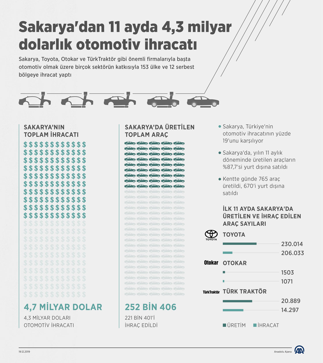 Sakarya'dan 11 ayda 4,3 milyar dolarlık otomotiv ihracatı