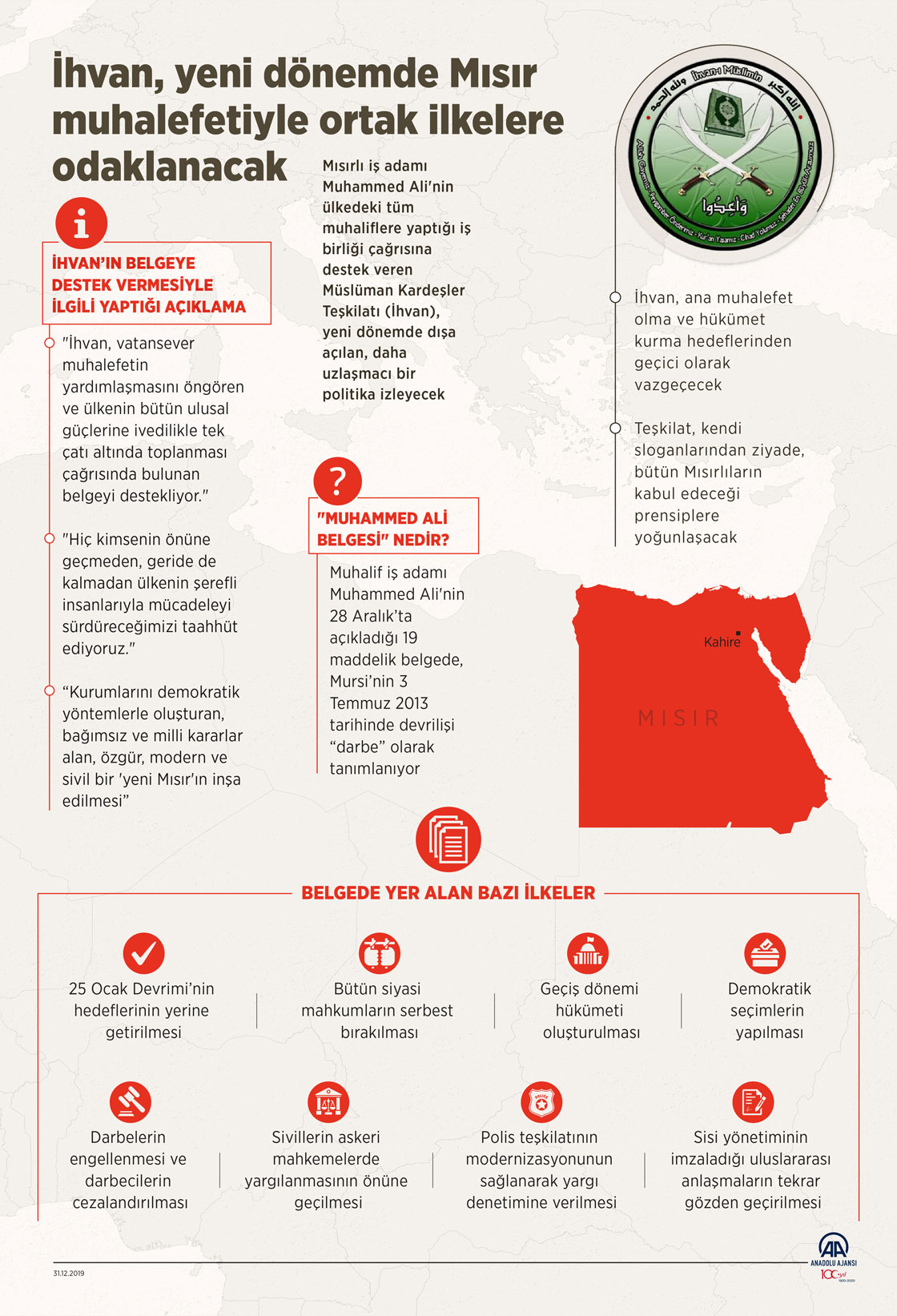 Müslüman Kardeşler Teşkilatı (İhvan), "Muhammed Ali Belgesi"ne destek vererek, ülkedeki tüm muhaliflerle ortak çizgide yer almayı tercih ettiği yeni bir döneme girdiğini gösteriyor. ( Muhammed Ali Yiğit - Anadolu Ajansı )