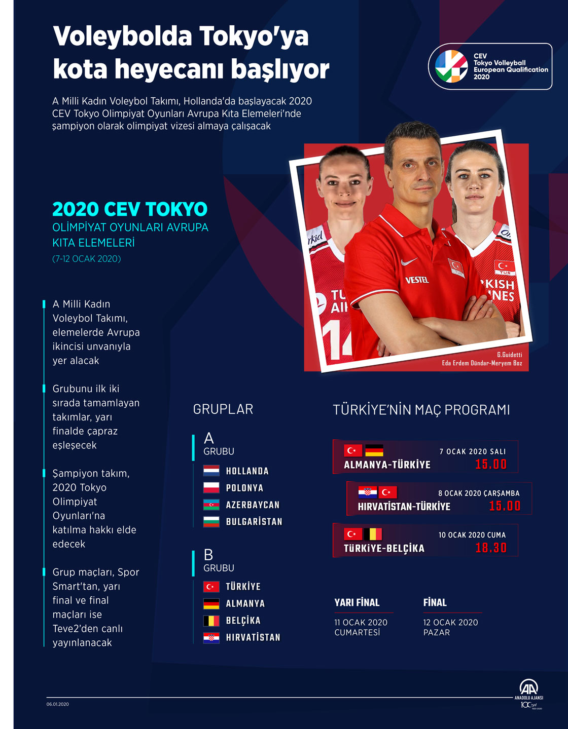 A Milli Kadın Voleybol Takımı, Hollanda'da yarın başlayacak 2020 CEV Tokyo Olimpiyat Oyunları Avrupa Kıta Elemeleri'nde mücadele edecek. ( Kemal Delikmen - Anadolu Ajansı )