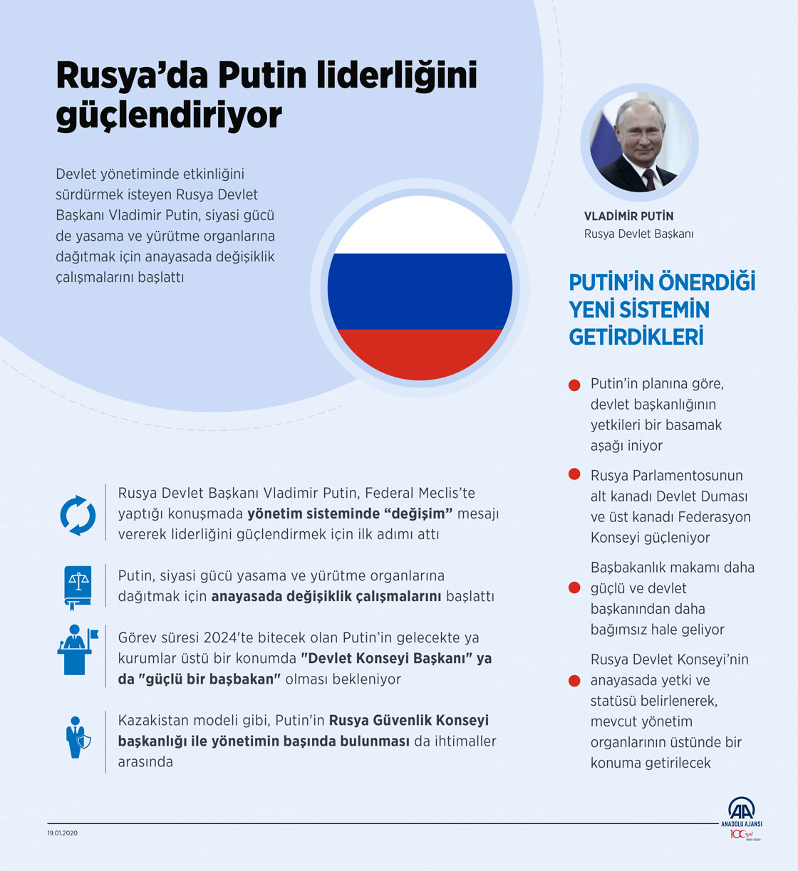 Rusya Devlet Başkanı Vladimir Putin, 2024'te sona erecek görev süresinin bitmesinden önce liderliğini güçlendirmek için ilk adımı attı. ( Kemal Delikmen - Anadolu Ajansı )