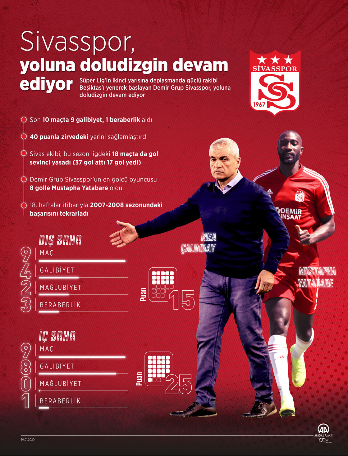 Süper Lig'in ikinci yarısına deplasmanda güçlü rakibi Beşiktaş'ı yenerek başlayan Demir Grup Sivasspor, yoluna doludizgin devam ediyor. ( Muhammed Ali Yiğit - Anadolu Ajansı )