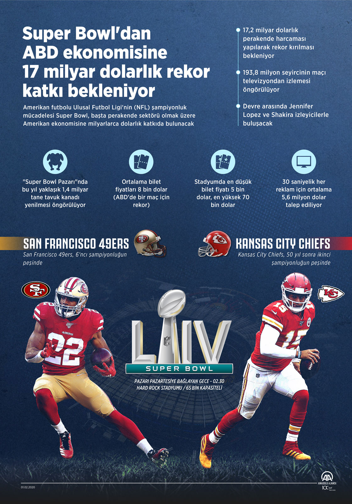 Super Bowl'dan ABD ekonomisine 17 milyar dolarlık rekor katkı bekleniyor