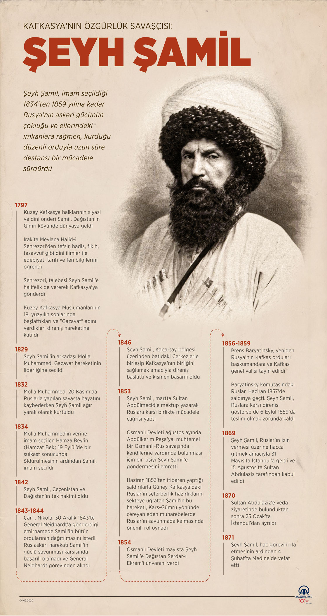 Çarlık Rusyası'na karşı verdiği mücadeleden dolayı Türkiye'de "Kafkas Kartalı" olarak bilinen Şeyh Şamil, vefatının 149. yılında yad ediliyor. ( Kemal Delikmen - Anadolu Ajansı )