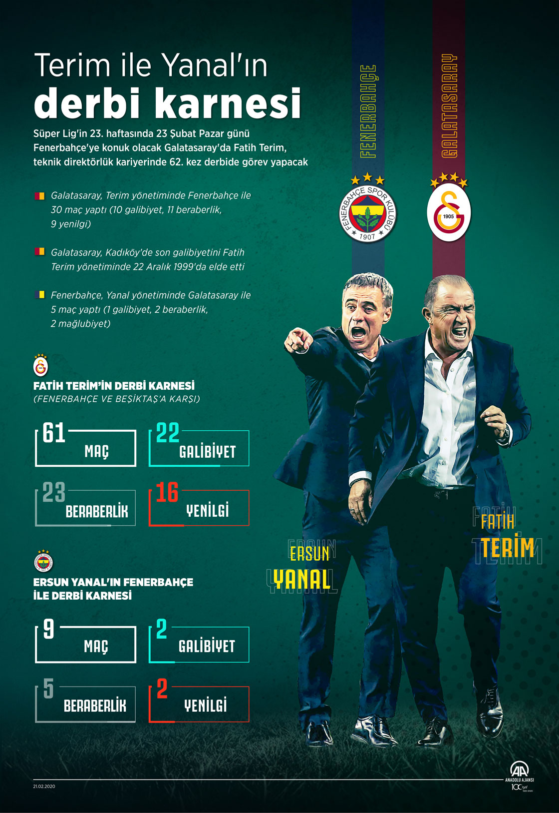 Süper Lig'in 23. haftasında 23 Şubat Pazar günü Fenerbahçe'ye konuk olacak Galatasaray'da Fatih Terim, teknik direktörlük kariyerinde 62. kez derbide görev yapacak. (Anadolu Ajansı - Muhammed Ali Yiğit)