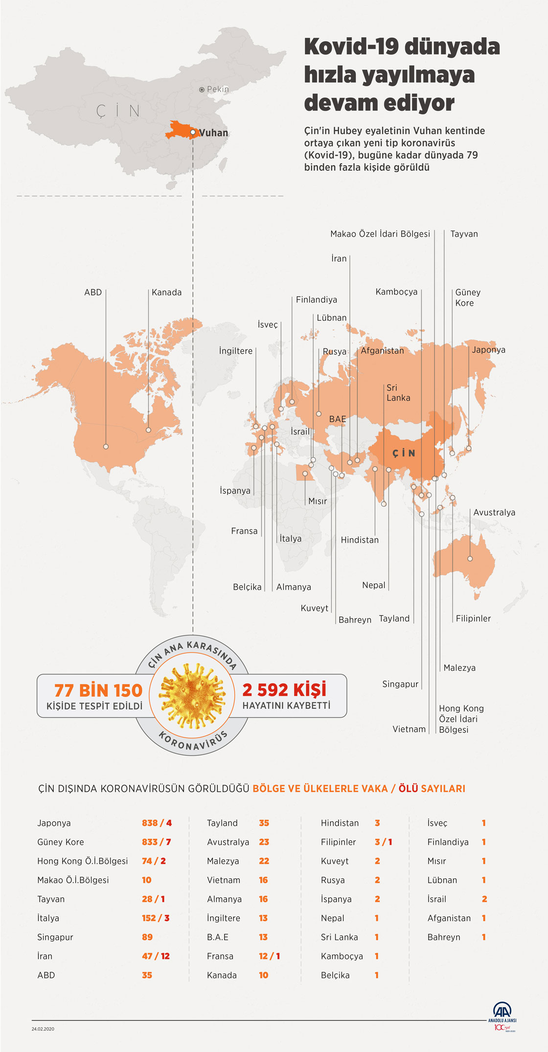 Çin'in Hubey eyaletinin Vuhan kentinde ortaya çıkan yeni tip koronavirüs (Kovid-19), bugüne kadar dünyada 79 binden fazla kişide görüldü. (Anadolu Ajansı - Kemal Delikmen)