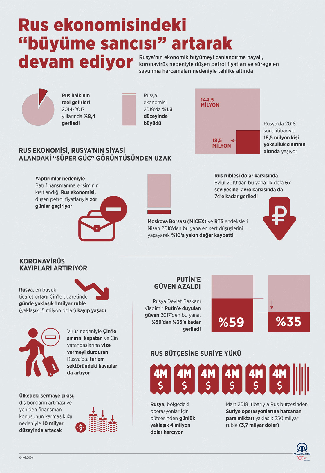Rusya’nın ekonomik büyümeyi canlandırma hayali, koronavirüs nedeniyle düşen petrol fiyatları ve süregelen savunma harcamaları nedeniyle tehlike altında. ( Mahmut Resul Karaca - Anadolu Ajansı )