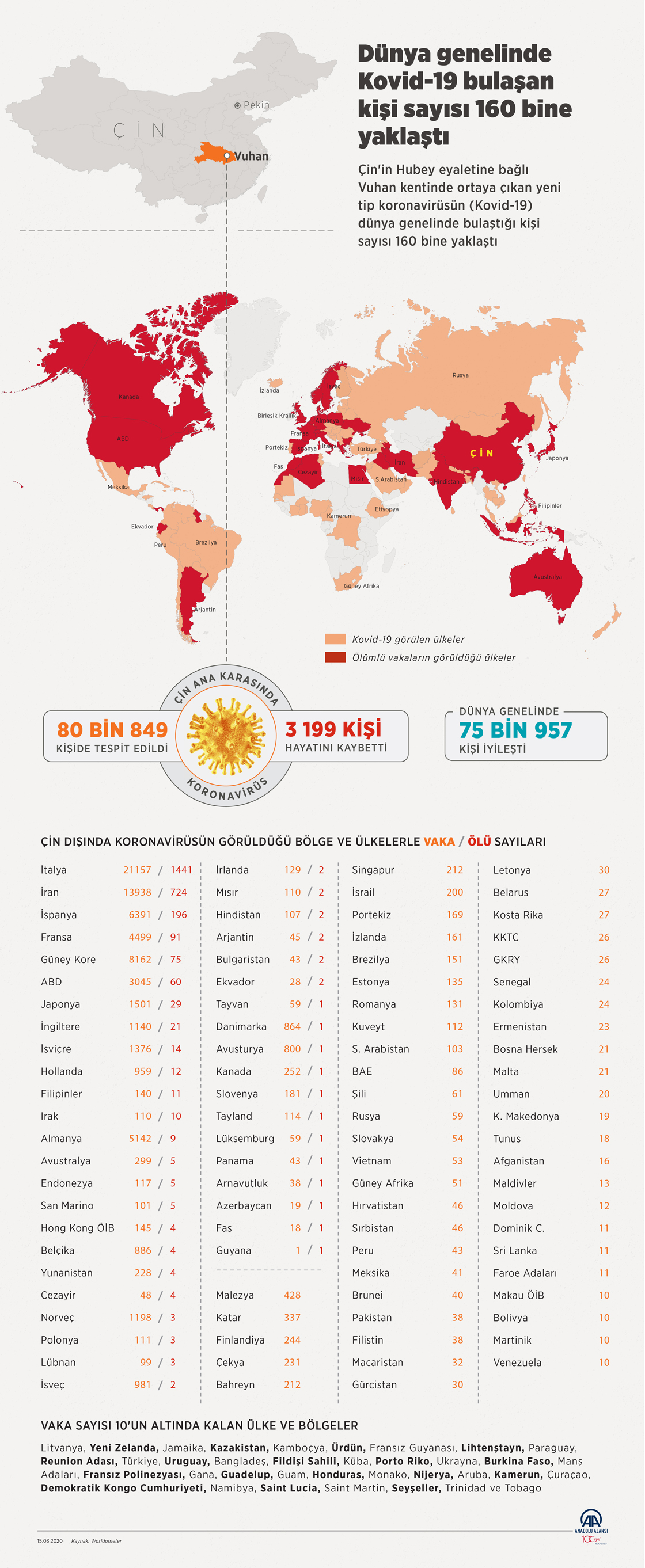 Çin'in Hubey eyaletine bağlı Vuhan kentinde ortaya çıkan yeni tip koronavirüsün (Kovid-19) dünya genelinde bulaştığı kişi sayısı 160 bine yaklaştı ( Mahmut Resul Karaca - Anadolu Ajansı )
