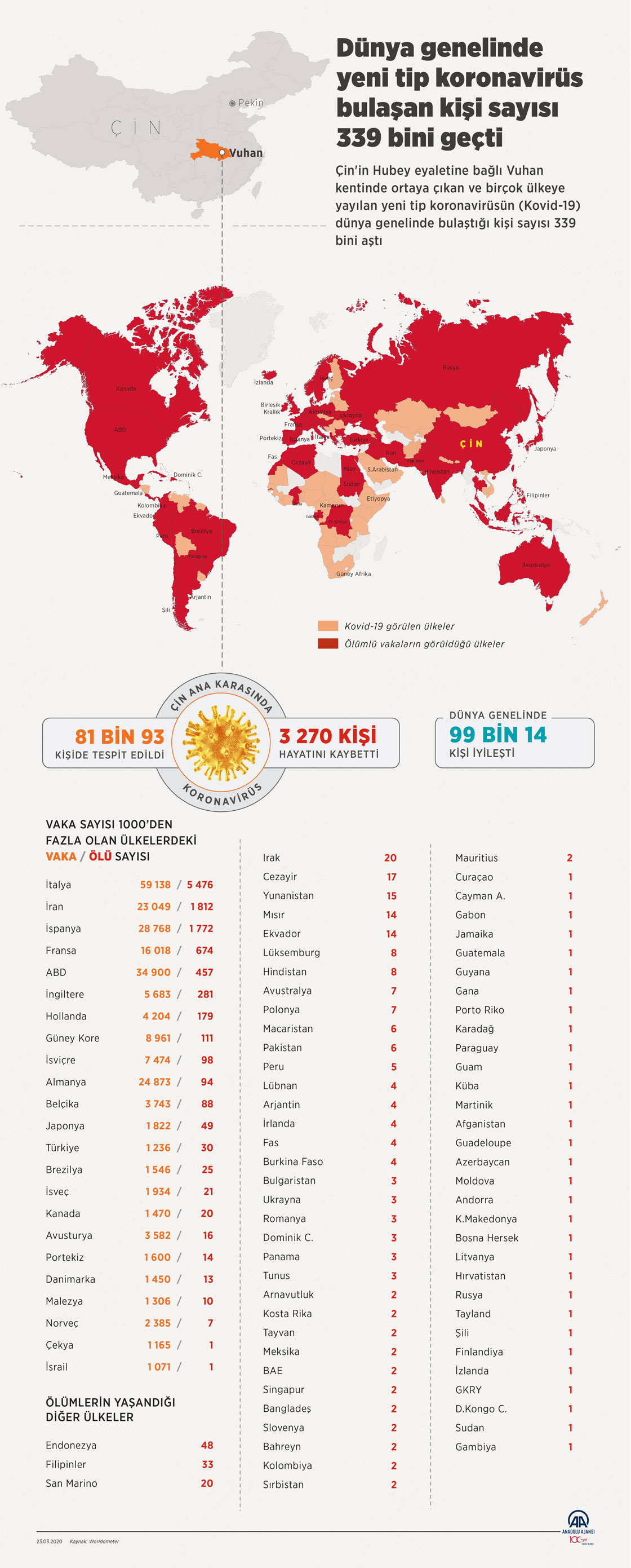 Dünya genelinde yeni tip koronavirüs bulaşan kişi sayısı 339 bini geçti