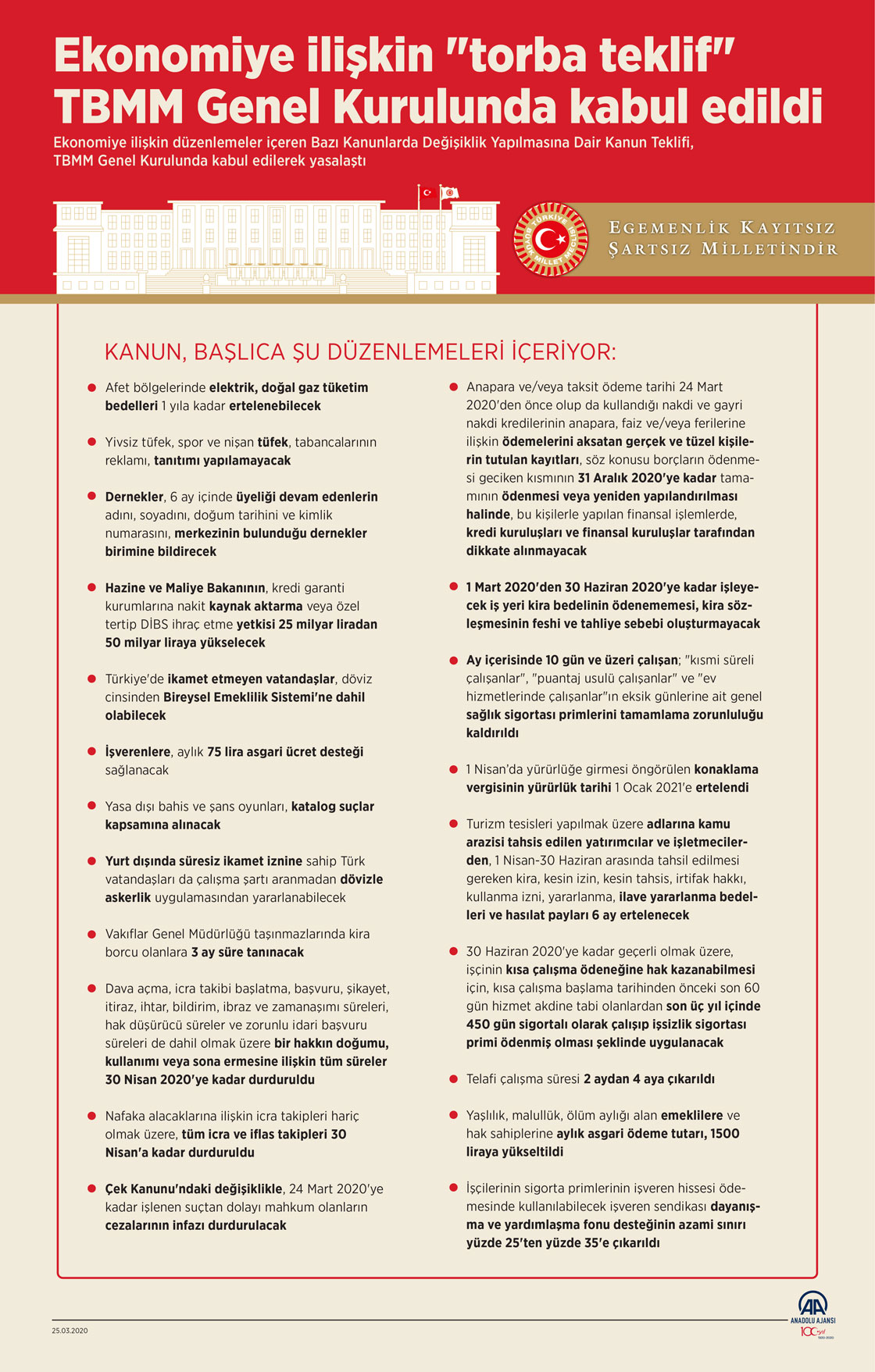 Ekonomiye ilişkin düzenlemeler içeren Bazı Kanunlarda Değişiklik Yapılmasına Dair Kanun Teklifi, TBMM Genel Kurulunda kabul edilerek yasalaştı.