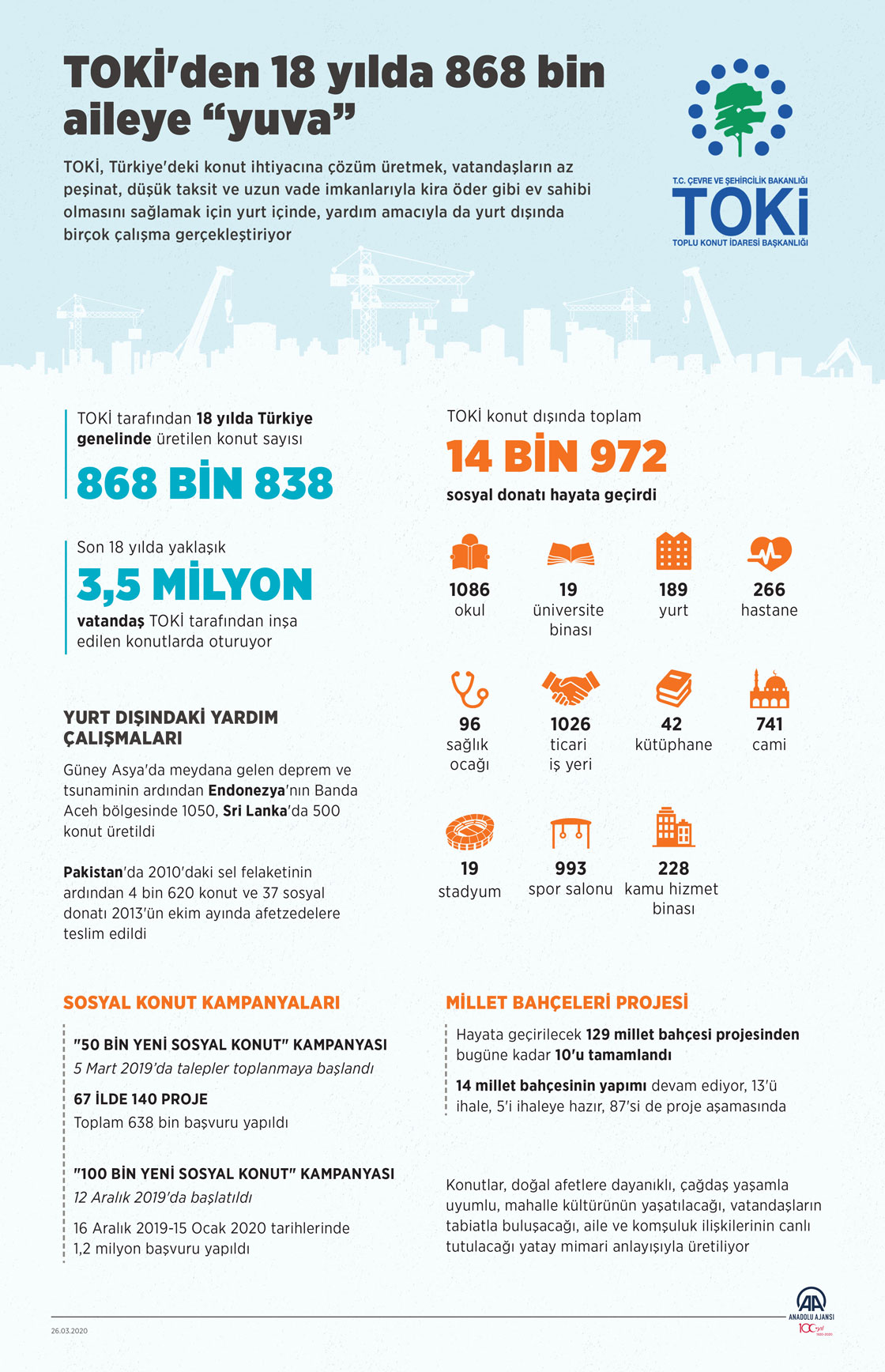 Çevre ve Şehircilik Bakanlığı Toplu Konut İdaresi Başkanlığınca (TOKİ) 18 yılda 868 bin 838 konut, 14 bin 972 sosyal donatı üretildi. ( Elmurod Usubaliev - Anadolu Ajansı )