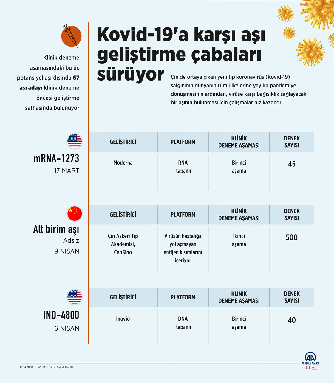 Çin'de ortaya çıkan yeni tip koronavirüs (Kovid-19) salgınının dünyanın tüm ülkelerine yayılıp pandemiye dönüşmesinin ardından, virüse karşı bağışıklık sağlayacak bir aşının bulunması için çalışmalar hız kazandı.(Grafik: Kemal Delikmen/AA)