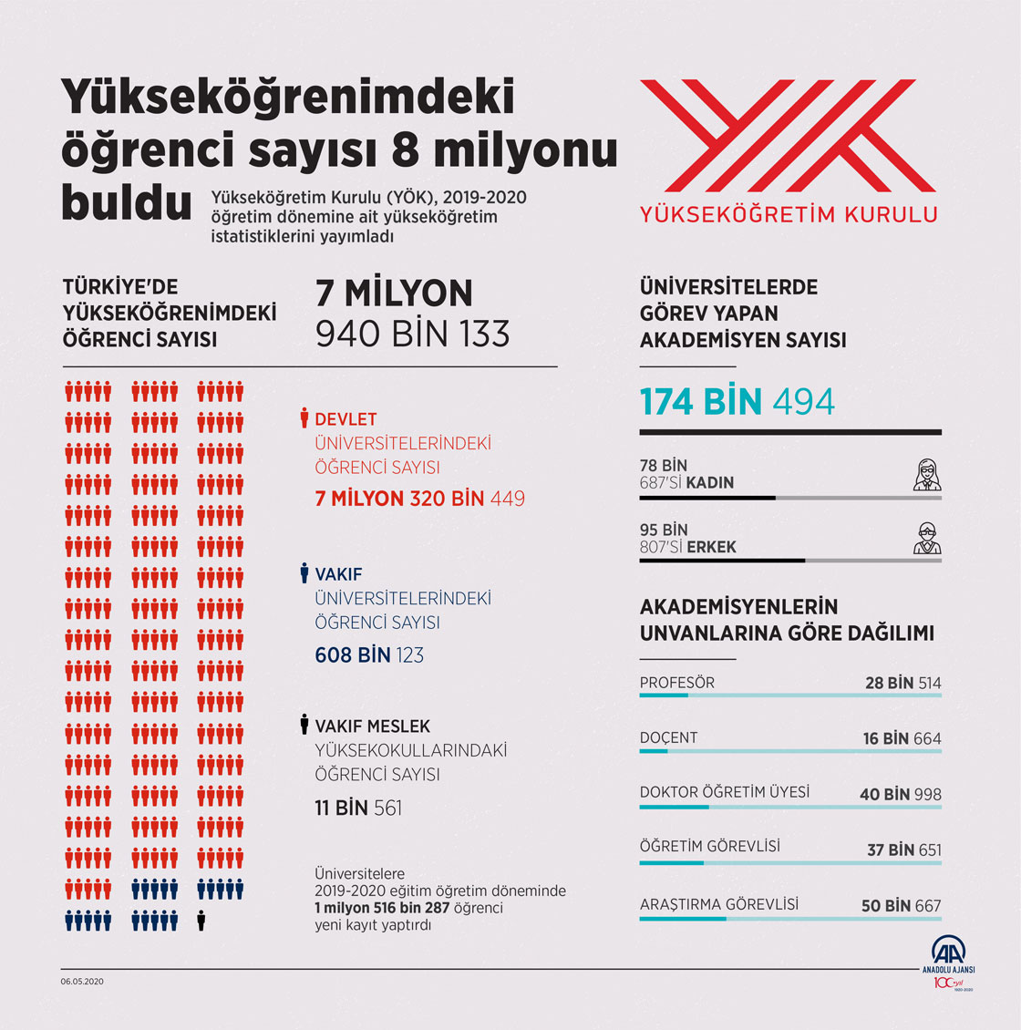 Yükseköğretim Kurulunca (YÖK) açıklanan istatistiklere göre, Türkiye'de 2019-2020 öğretim yılında üniversitelerde 7 milyon 940 bin 133 öğrenci eğitim alıyor. ( Mahmut Resul Karaca - Anadolu Ajansı )