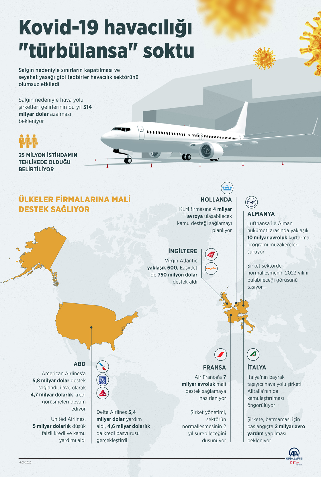 Yeni tip koronavirüsün (Kovid-19) ardından dünya genelinde yürürlüğe giren sınırların kapatılması ve seyahat yasağı gibi kısıtlayıcı tedbirlerin havacılık sektörünü mali sıkıntıya sokması dikkati çekiyor. (Yasin Demirci - AA)