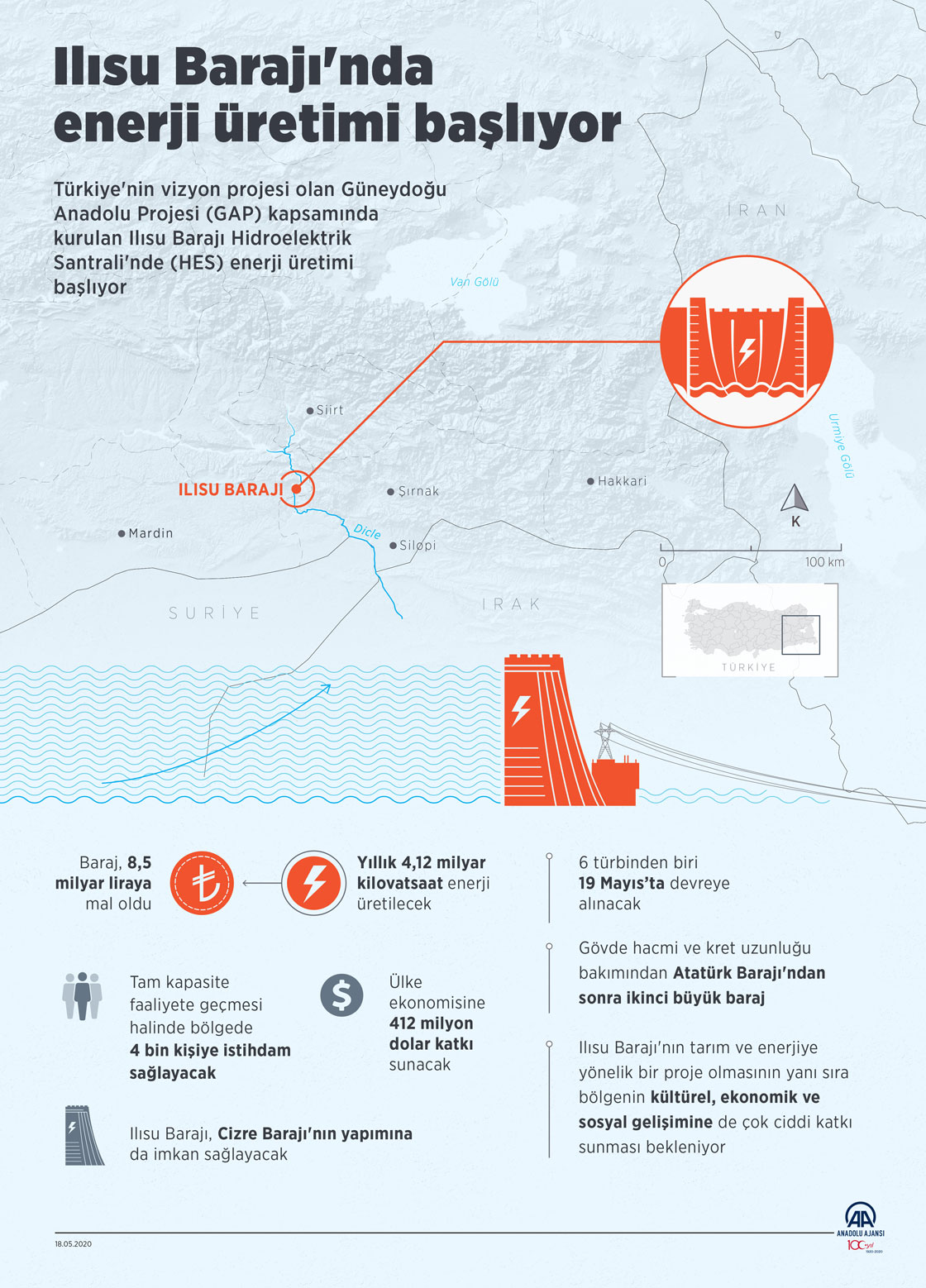 Türkiye'nin vizyon projesi olan Güneydoğu Anadolu Projesi (GAP) kapsamında kurulan Ilısu Barajı Hidroelektrik Santrali'nde (HES) enerji üretimi başlıyor