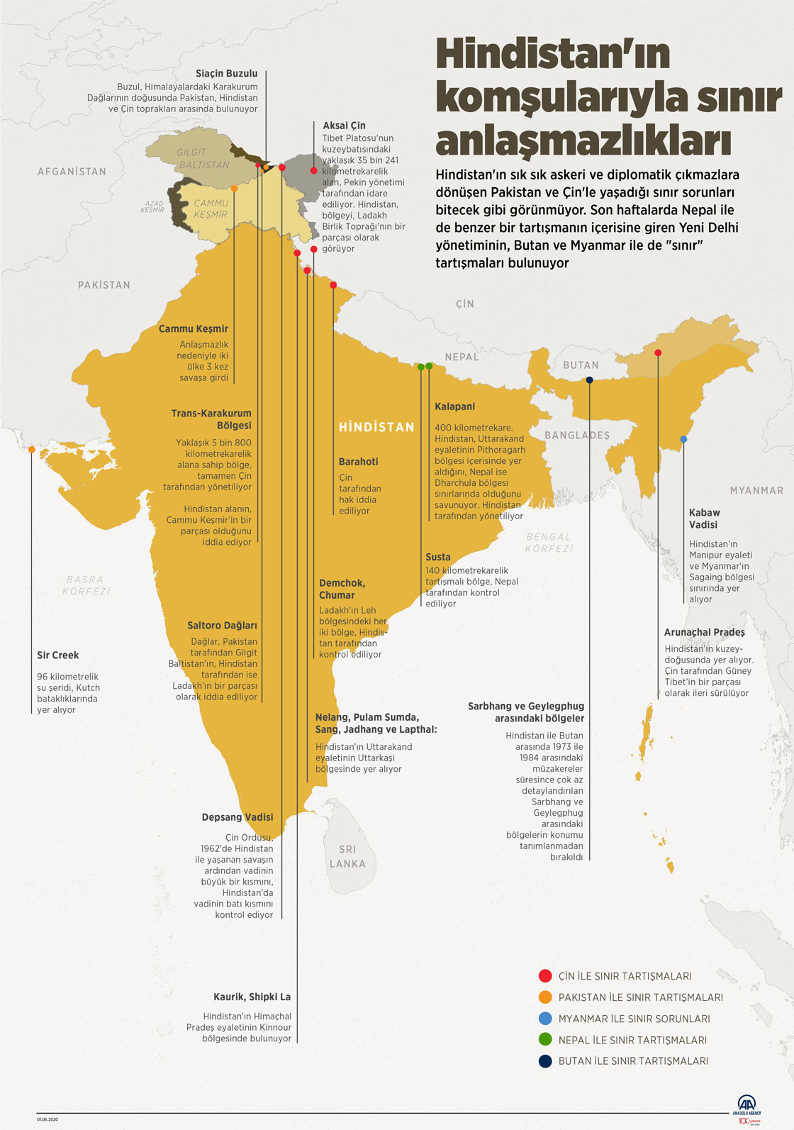 Bağımsızlığından bu yana sadece Bangladeş ve Sri Lanka ile sınır problemlerini çözmeyi başarabilen Hindistan, son zamanlarda Çin, Nepal ve Pakistan ile benzer problemlerle karşı karşıya bulunuyor. ( Mahmut Resul Karaca - Anadolu Ajansı )