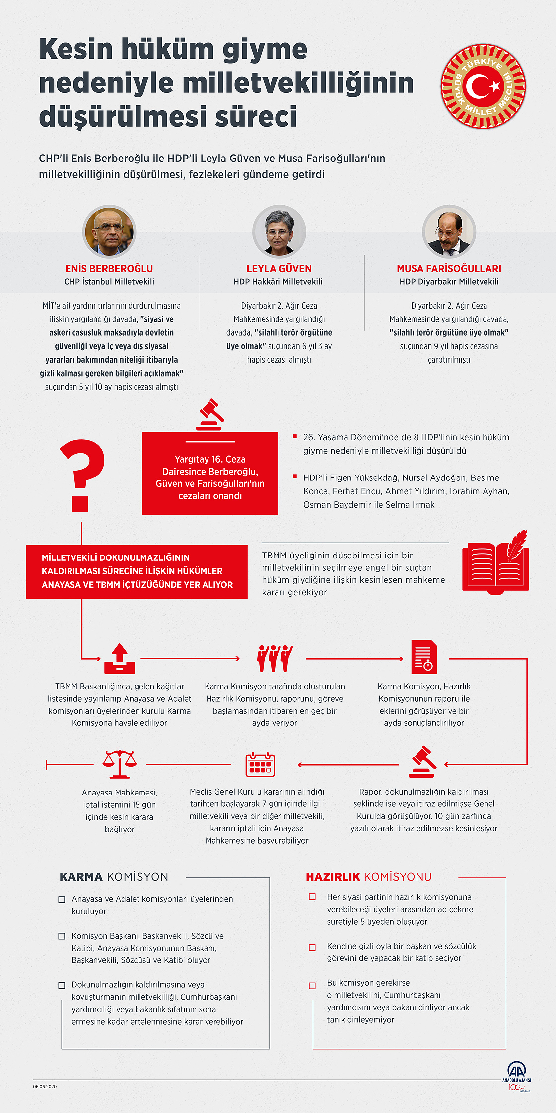 CHP'li Enis Berberoğlu ile HDP'li Leyla Güven ve Musa Farisoğulları'nın milletvekilliğinin düşürülmesi, fezlekeleri gündeme getirdi. Bu kişiler hakkında mahkemelerce verilen ve kesinleşmiş cezalara ilişkin Cumhurbaşkanlığı tezkereleri okunarak bilgiye sunulmuştu. Anayasa gereğince, Genel Kurulda okunan tezkerelerin ardından Berberoğlu ile Güven ve Farisoğulları'nın milletvekilliği düşmüştü06 Haziran 2020•Güncelleme: 06 Haziran 2020