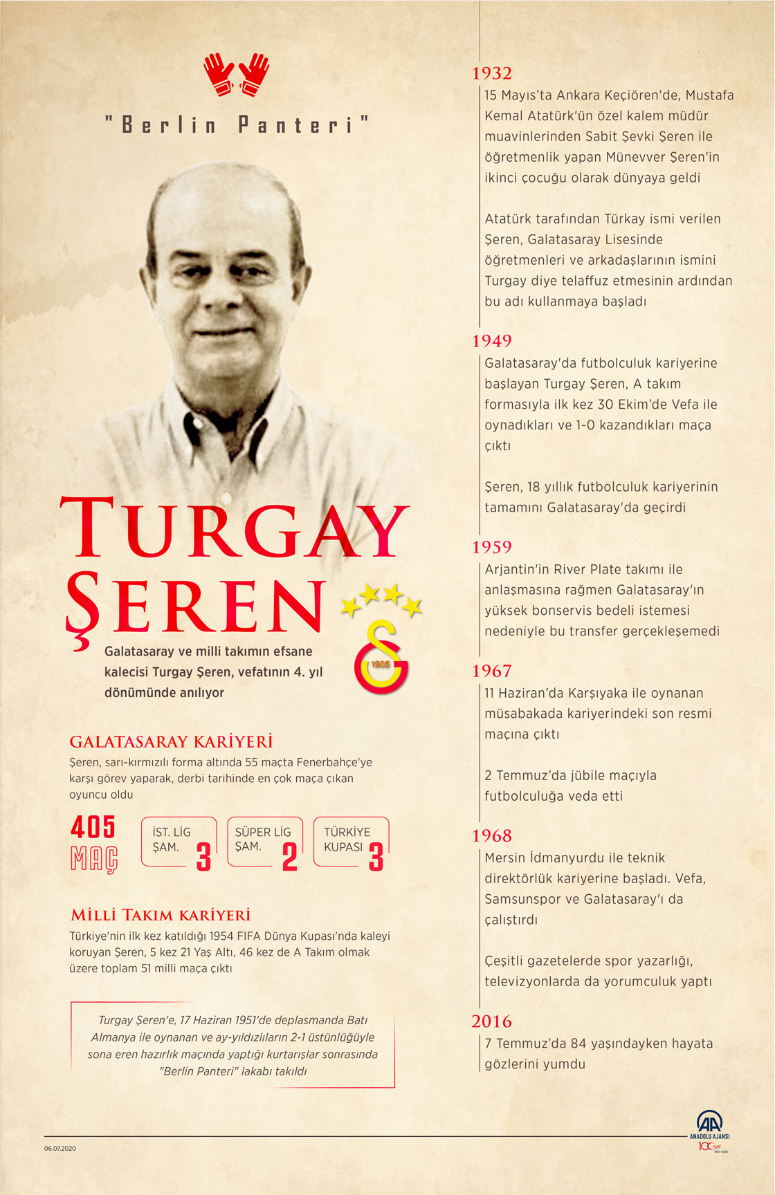 Galatasaray ve milli takımın efsane kalecisi, "Berlin Panteri" lakaplı Turgay Şeren, vefatının 4. yıl dönümünde anılıyor. ( Muhammed Ali Yiğit - Anadolu Ajansı )