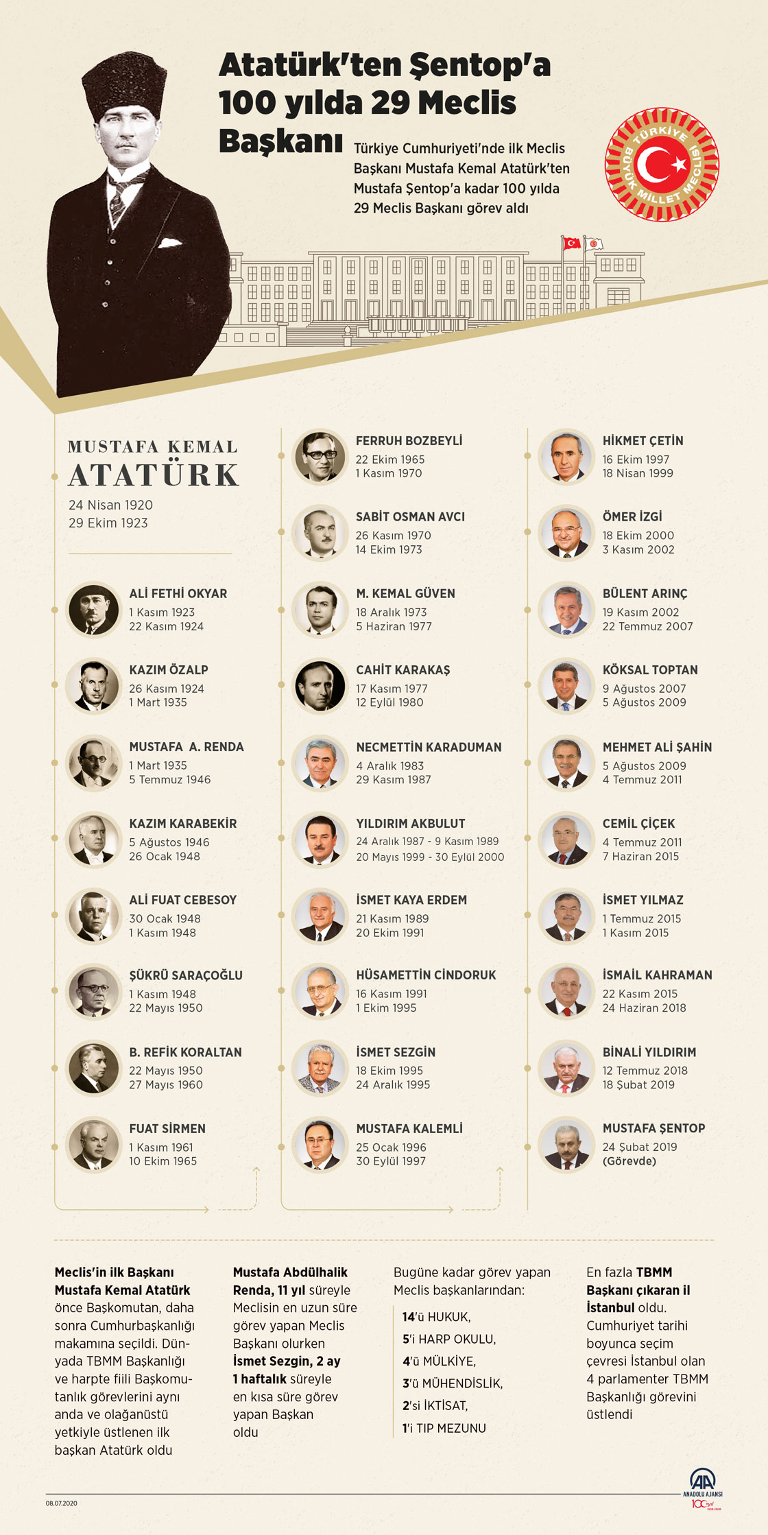 Türkiye Cumhuriyeti'nde ilk Meclis Başkanı Mustafa Kemal Atatürk'ten Mustafa Şentop'a kadar 100 yılda 29 Meclis Başkanı görev aldı. ( Elmurod Usubaliev - Anadolu Ajansı )